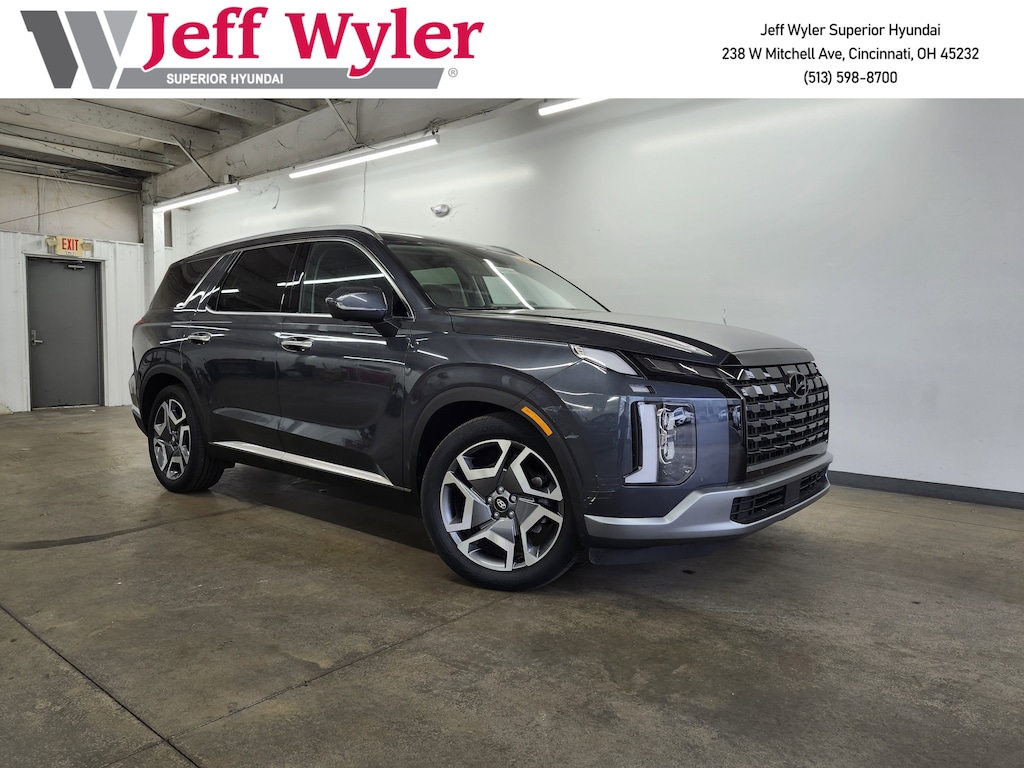 Jeff Wyler Superior Hyundai is excited to offer this beautiful 2024 Hyundai Palisade Limited in Steel Graphite. Well equipped with: Option Group 01, Hyundai Certified Used Vehicles Certified, 12 Speakers, 3.648 Axle Ratio, 3rd row seats: split-bench, 4-Wheel Disc Brakes, ABS brakes, Air Conditioning, All-Season Fitted Liners, Alloy wheels, AM/FM radio: SiriusXM, Apple CarPlay & Android Auto, Auto High-beam Headlights, Auto-dimming door mirrors, Auto-dimming Rear-View mirror, Auto-leveling suspension, Automatic temperature control, Brake assist, Bumper Applique, Bumpers: body-color, Cargo Net, Cargo Tray, Carpeted Floor Mats, Compass, Delay-off headlights, Driver door bin, Driver vanity mirror, Dual front impact airbags, Dual front side impact airbags, Electronic Stability Control, Emergency communication system, Exterior Parking Camera Rear, First Aid Kit, Four wheel independent suspension, Front anti-roll bar, Front Bucket Seats, Front Center Armrest, Front dual zone A/C, Front reading lights, Fully automatic headlights, Garage door transmitter: HomeLink, harman/kardon® Speakers, Heads-Up Display, Heated & Ventilated Front Bucket Seats, Heated door mirrors, Heated front seats, Heated rear seats, Heated steering wheel, Illuminated entry, Knee airbag, Leather Seat Trim, Low tire pressure warning, Memory seat, Navigation System, Occupant sensing airbag, Outside temperature display, Overhead airbag, Overhead console, Panic alarm, Passenger door bin, Passenger vanity mirror, Power door mirrors, Power driver seat, Power Liftgate, Power moonroof, Power passenger seat, Power steering, Power windows, Radio data system, Radio: AM/FM/MP3 Premium Audio System, Rain sensing wipers, Rear air conditioning, Rear anti-roll bar, Rear audio controls, Rear reading lights, Rear side impact airbag, Rear window defroster, Rear window wiper, Reclining 3rd row seat, Remote keyless entry, Security system, Speed control, Speed-sensing steering, Split folding rear seat, Spoiler, Steering wheel mounted audio controls, Tachometer, Telescoping steering wheel, Tilt steering wheel, Traction control, Trip computer, Turn signal indicator mirrors, Variably intermittent wipers, Ventilated front seats, Ventilated rear seats, Wheel Locks, and Wheels: 20" x 7.5J Alloy. CARFAX One-Owner. This sales price excludes tax, title, and dealer fees. While every reasonable effort is made to ensure the accuracy of this information, we are not responsible for any errors or omissions contained on these pages. Used vehicles 10 years of age or newer with less than 100,000 miles are eligible for the Wyler Assurance Program, but eligible vehicles must pass our reconditioning process and multi-point inspection. Provided the vehicle passes inspection, vehicles will be eligible for the 6 month/6,000 mile limited warranty. The 6 month/6,000 mile limited warranty is NOT available on AS-IS vehicles, wholesale vehicles, lease buyback/pass-thru vehicles or un-inspected vehicles. Note that this program can also apply to vehicles where the remaining factory coverage is less than 6 months or 6,000 miles. Please check the Federal Trade Commission (FTC) Buyers guide on the vehicle for full details as to whether or not warranty coverage may apply. Contact Dealer for additional details. The Wyler Assurance 6 month/6,000 Mile limited warranty ends 6 months from the date of the Retail Purchase Agreement (BUYERS ORDER) or when the vehicle's odometer registers 6,000 additional miles to the mileage listed on the BUYERS ORDER, whichever comes first.Your Deductible - The warranty holder on your contract pays the first $100 of each covered repair.
