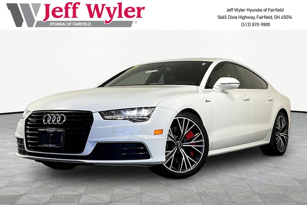 Clean CARFAX. Jeff Wyler Hyundai of Fairfield is honored to offer this great-looking 2017 Audi A7 3.0T Premium Plus in Ibis White. Well equipped with: Black Optic Package (Wheels: 9.0" x 20" 5-Spoke W-Design), Comfort Seating Package (Individual Contour Front Seats and Valcona Leather Interior), High-Gloss Black Package, Sport Package w/Black or Nougat Brown Int (DISC) (Sport Suspension and Wheels: 9.0" x 19" 7-Double-Spoke Galvano Silver), Android Auto, Apple CarPlay, CALL NOW FOR YOUR VIP APPOINTMENT 513-870-9800, FULLY SERVICED w/RECORDS, GUARANTEED FINANCING!! NO MATTER YOUR SITUATION WE CAN GET AN APPROVAL!!, THE #1 Volume dealer in the region! Come see why for yourself Today!!, WE PAY MORE FOR YOUR TRADE!!, 14 Speakers, 4-Wheel Disc Brakes, ABS brakes, Air Conditioning, Alloy wheels, AM/FM radio: SiriusXM, Anti-whiplash front head restraints, Audi Guard All-Weather Floor Mats, Audi Guard Wheel Lock Kit, Audi Smartphone Interface, Auto tilt-away steering wheel, Auto-dimming door mirrors, Auto-dimming Rear-View mirror, Automatic temperature control, Bose Sound System w/Subwoofer, Brake assist, Bumpers: body-color, CD player, Compass, Delay-off headlights, Deletes Front License Plate Holder, Driver door bin, Driver vanity mirror, Dual front impact airbags, Dual front side impact airbags, DVD-Audio, Electronic Stability Control, Exterior Parking Camera Rear, Four wheel independent suspension, Front anti-roll bar, Front Bucket Seats, Front Center Armrest w/Storage, Front dual zone A/C, Front fog lights, Front reading lights, Garage door transmitter: HomeLink, Genuine wood console insert, Genuine wood dashboard insert, Genuine wood door panel insert, Heads-Up Display, Heated door mirrors, Heated Front Bucket Seats, Heated front seats, Illuminated entry, Knee airbag, Leather Seating Surfaces, Leather Shift Knob, Leather steering wheel, Low tire pressure warning, Memory seat, Navigation System, Occupant sensing airbag, Outside temperature display, Overhead airbag, Panic alarm, Passenger door bin, Passenger vanity mirror, Power door mirrors, Power driver seat, Power Liftgate, Power moonroof, Power passenger seat, Power steering, Power windows, Radio data system, Radio: Audi MMI Navigation Plus w/AM/FM, Rain sensing wipers, Rear air conditioning, Rear anti-roll bar, Rear dual zone A/C, Rear fog lights, Rear reading lights, Rear seat center armrest, Rear window defroster, Remote keyless entry, Security system, Speed control, Speed-sensing steering, Speed-Sensitive Wipers, Split folding rear seat, Spoiler, Steering wheel memory, Steering wheel mounted audio controls, Tachometer, Telescoping steering wheel, Tilt steering wheel, Traction control, Trip computer, Turn signal indicator mirrors, USB Cables, Variably intermittent wipers, and Wheels: 8.0" x 19" 5-Spoke V-Design. Reviews: * Standard V6 engine delivers exceptional performance; top-notch tech ranges from an in-car Wi-Fi hotspot to a full set of driver safety aids; hatchback offers more flexible cargo space than regular sedan's trunk. Source: EdmundsTO CHECK ON THE AVAILABILITY OF THIS VEHICLE REACH OUT TO ONE OF OUR TEAM MEMBERS!! ALSO SHOP ONLINE AT https://www.jeffwylerhyundaioffairfield.com/ Proudly Serving: Cincinnati, Dayton, Columbus, Louisville, Lexington, Indianapolis, Hamilton, Florence, Alexandria, Beavercreek, Springdale, West Chester, Monroe, Fairfield, Kenwood, Newport and all of greater Cincinnati Ohio, Indiana, and Northern Kentucky. New Price!