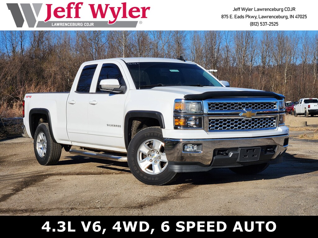 Jeff Wyler Chrysler Dodge Jeep of Lawrenceburg is very proud to offer this rock solid 2015 Chevrolet Silverado 1500 LT in Summit White. All Star Edition (110-Volt AC Power Outlet, Dual-Zone Automatic Climate Control, Electric Rear-Window Defogger, Front Halogen Fog Lamps, Radio: AM/FM 8" Diagonal Color Touch Screen, Rear Vision Camera w/Dynamic Guide Lines, Remote Vehicle Starter System, SiriusXM Satellite Radio, and Theft Deterrent System (Unauthorized Entry)), Trailering Equipment (Heavy-Duty Rear Locking Differential), 6-Speed Automatic Electronic with Overdrive, 4WD, Black Cloth, 10-Way Power Driver's Seat Adjuster, 150 Amp Alternator, 3.42 Rear Axle Ratio, 4-Wheel Disc Brakes, 4.2" Diagonal Color Display Driver Info Center, 40/20/40 Front Split Bench Seat, 6 Speaker Audio System, 6 Speakers, ABS brakes, Air Conditioning, Alloy wheels, AM/FM radio: SiriusXM, Bed Liner, Bluetooth® For Phone, Body Color Bodyside Moldings, Body Color Door Handles, Body-Color Mirror Caps, Body-Color Power Adjustable Heated Outside Mirrors, Bodyside moldings, Brake assist, Bumpers: chrome, CD player, Cloth Seat Trim, Color-Keyed Carpeting w/Rubberized Vinyl Floor Mats, Compass, Deep-Tinted Glass, Delay-off headlights, Driver & Front Passenger Illuminated Vanity Mirrors, Driver door bin, Driver vanity mirror, Dual front impact airbags, Dual front side impact airbags, E85 FlexFuel Capable, Electronic Stability Control, Emergency communication system: OnStar Directions & Connections, EZ Lift & Lower Tailgate, Front anti-roll bar, Front Center Armrest w/Storage, Front Chrome Bumper, Front License Plate Kit, Front reading lights, Front wheel independent suspension, Fully automatic headlights, Heated door mirrors, Illuminated entry, Integrated Trailer Brake Controller, Leather Wrapped Steering Wheel w/Cruise Controls, Low tire pressure warning, Manual Tilt Wheel Steering Column, Occupant sensing airbag, OnStar 6 Months Directions & Connections Plan, OnStar w/4G LTE, Outside temperature display, Overhead airbag, Overhead console, Panic alarm, Passenger door bin, Passenger vanity mirror, Power door mirrors, Power steering, Power windows, Power Windows w/Driver Express Up, Premium audio system: Chevrolet MyLink, Radio data system, Radio: AM/FM Audio System w/Chevrolet MyLink, Rear 60/40 Folding Bench Seat (Folds Up), Rear Chrome Bumper, Rear reading lights, Rear step bumper, Rear Wheelhouse Liners, Remote Keyless Entry, Remote keyless entry, Single Slot CD/MP3 Player, Speed control, Speed-sensing steering, Split folding rear seat, Steering Wheel Audio Controls, Steering wheel mounted audio controls, Tachometer, Tilt steering wheel, Traction control, Trip computer, Variably intermittent wipers, Voltmeter, and Wheels: 17" x 8" Bright Machined Aluminum Our PRE-OWNED vehicles are put through a rigorous 167- POINT QUALITY ASSURANCE INSPECTION along with an average amount of over $1,400.00 SPENT to recondition each vehicle so we can be sure to deliver you the highest quality vehicle like you deserve! ***ONLINE PRICE DOES NOT INCLUDE WYLER FAMILY FIRST PACKAGE*** Stop by 4136 Shelbyville Road to see for yourself, or give us a call @ 502-897-3151 to schedule your test drive! Ask about available certifications.