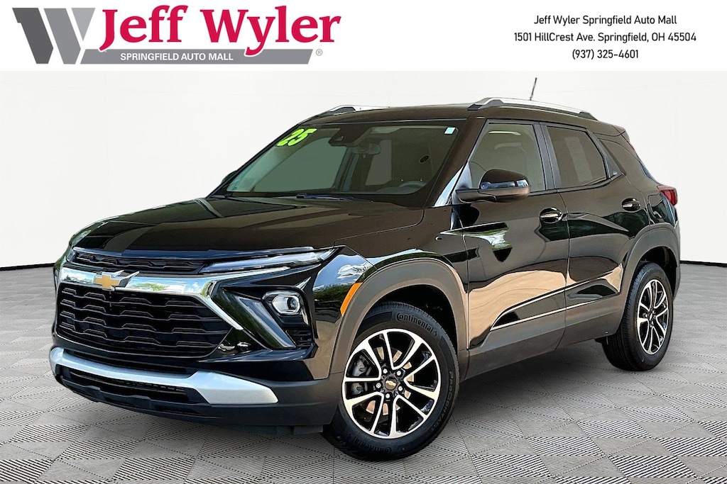 Jeff Wyler Springfield Auto Mall is proud to offer this good-looking 2025 Chevrolet TrailBlazer LT in Mosaic Black Metallic. Well equipped with: Preferred Equipment Group 1LT, 1 Type-An and 1 Type-C USB Ports, 4-Way Manual Front Passenger Seat Adjuster, 4-Wheel Disc Brakes, 5.45 Final Drive Axle Ratio, 6 Speakers, 6-Speaker Audio System Feature, 6-Way Manual Driver Seat Adjuster, ABS brakes, Air Conditioning, Alloy wheels, AM/FM radio: SiriusXM, Auto High-beam Headlights, Brake assist, Bumpers: body-color, Cloth Seat Trim, Compass, Delay-off headlights, Driver door bin, Driver vanity mirror, Dual front impact airbags, Dual front side impact airbags, Electronic Stability Control, Emergency communication system: OnStar and Chevrolet connected services capable, Exterior Parking Camera Rear, Flat-Folding Front Passenger Seatback, Front anti-roll bar, Front Bucket Seats, Front Center Armrest, Front reading lights, Front wheel independent suspension, Fully automatic headlights, Heated door mirrors, Illuminated entry, Knee airbag, Low tire pressure warning, Occupant sensing airbag, Overhead airbag, Overhead console, Panic alarm, Passenger door bin, Passenger vanity mirror, Power door mirrors, Power steering, Power windows, Radio data system, Radio: AM/FM Stereo Audio System, Rear side impact airbag, Rear window defroster, Rear window wiper, Remote keyless entry, Ride and Handling Suspension, Security system, SiriusXM Trial Subscription, Speed control, Split folding rear seat, Spoiler, Steering wheel mounted audio controls, Tachometer, Telescoping steering wheel, Tilt steering wheel, Traction control, Trip computer, Variably intermittent wipers, Wheels: 17" High Gloss Black Machined Aluminum, and Wireless Apple CarPlay/Android Auto. Ask about available certifications. Used vehicles 10 years of age or newer with less than 100,000 miles are eligible for the Wyler Assurance Program, but eligible vehicles must pass our reconditioning process and multi-point inspection. Provided the vehicle passes inspection, vehicles will be eligible for the 6 month/6,000 mile limited warranty. The 6 month/6,000 mile limited warranty is NOT available on AS-IS vehicles, wholesale vehicles, lease buyback/pass-thru vehicles or un-inspected vehicles. Note that this program can also apply to vehicles where the remaining factory coverage is less than 6 months or 6,000 miles. Please check the Federal Trade Commission (FTC) Buyers guide on the vehicle for full details as to whether or not warranty coverage may apply. Contact Dealer for additional details. The Wyler Assurance 6 month/6,000 Mile limited warranty ends 6 months from the date of the Retail Purchase Agreement (BUYERS ORDER) or when the vehicle's odometer registers 6,000 additional miles to the mileage listed on the BUYERS ORDER, whichever comes first. Your Deductible - The warranty holder on your contract pays the first $100 of each covered repair.