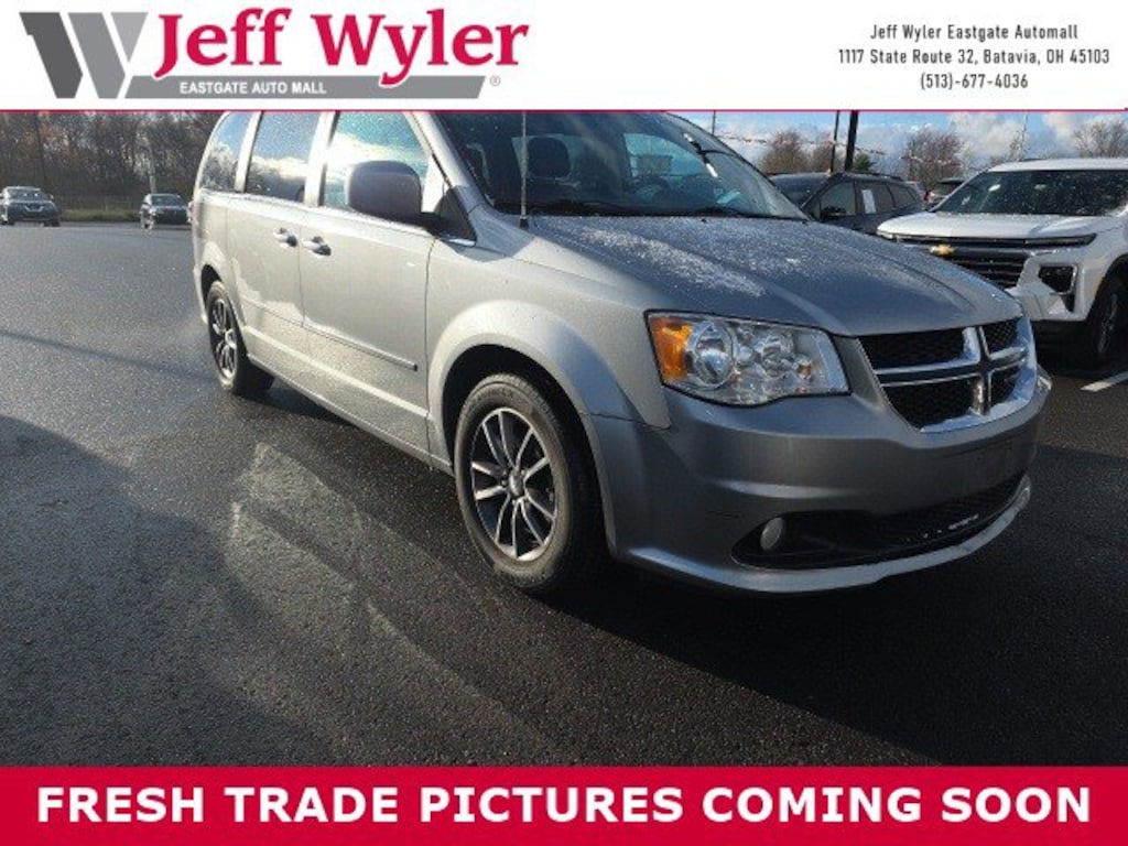 Jeff Wyler Eastgate Auto Mall is proud to offer this beautiful-looking 2017 Dodge Grand Caravan SXT in Billet Silver Metallic Clearcoat. Well equipped with: Quick Order Package 29P SXT (1-Yr SiriusXM Radio Service, Automatic Headlamps, Black Finish I/P Bezel, Bluetooth® Streaming Audio, Bright Belt Moldings, Bright Side Roof Rails, Fog Lamps, Highline Door Trim Panel, Integrated Roof Rail Crossbars, Leather & Suede Bucket Seats, Leather Wrapped Shift Knob, Leather Wrapped Steering Wheel, Power 2-Way Driver Lumbar Adjust, Power 8-Way Driver Seat, Premium Interior Accents, Rear-View Auto-Dimming Mirror w/Microphone, Remote Start System, Remote USB Port, Security Alarm, SIRIUS Satellite Radio, and Uconnect Voice Command w/Bluetooth), Security Group, Uconnect Hands-Free Group, 2 Row Stow 'N Go w/Tailgate Seats, 2nd Row Buckets w/Fold-In-Floor, 3.16 Axle Ratio, 3rd row seats: split-bench, 4-Wheel Disc Brakes, 40GB Hard Drive w/28GB Available, 6 Speakers, 6.5" Touchscreen Display, ABS brakes, Air Conditioning, Alloy wheels, AM/FM radio, Anti-whiplash front head restraints, Audio Jack Input for Mobile Devices, Bodyside moldings, Brake assist, Bumpers: body-color, CD player, Delay-off headlights, Driver door bin, Driver vanity mirror, Driver's Seat Mounted Armrest, Dual front impact airbags, Dual front side impact airbags, Electronic Stability Control, Front anti-roll bar, Front Bucket Seats, Front dual zone A/C, Front reading lights, Front wheel independent suspension, Heated door mirrors, Illuminated entry, Knee airbag, Low tire pressure warning, Manufacturer's Statement of Origin, Occupant sensing airbag, Outside temperature display, Overhead airbag, Overhead console, Panic alarm, ParkView Rear Back-Up Camera, Passenger door bin, Passenger seat mounted armrest, Passenger vanity mirror, Power door mirrors, Power Liftgate, Power steering, Power windows, Radio: 430, Radio: 430 (DISC), Rear air conditioning, Rear window defroster, Rear window wiper, Reclining 3rd row seat, Remote keyless entry, Roof rack, Speed control, Split folding rear seat, Spoiler, Steering wheel mounted audio controls, Tachometer, Telescoping steering wheel, Tilt steering wheel, Touring Suspension, Traction control, Trip computer, Variably intermittent wipers, and Wheels: 17" x 6.5" Aluminum Granite Crystal. Clean CARFAX. Reviews: * Versatile seating and cargo bay configurations; affordable base price. Source: EdmundsAsk about available certifications. Used vehicles 10 years of age or newer with less than 100,000 miles are eligible for the Wyler Assurance Program, but eligible vehicles must pass our reconditioning process and multi-point inspection. Provided the vehicle passes inspection, vehicles will be eligible for the 6 month/6,000 mile limited warranty. The 6 month/6,000 mile limited warranty is NOT available on AS-IS vehicles, wholesale vehicles, lease buyback/pass-thru vehicles or un-inspected vehicles. Note that this program can also apply to vehicles where the remaining factory coverage is less than 6 months or 6,000 miles. Please check the Federal Trade Commission (FTC) Buyers guide on the vehicle for full details as to whether or not warranty coverage may apply. Contact Dealer for additional details. The Wyler Assurance 6 month/6,000 Mile limited warranty ends 6 months from the date of the Retail Purchase Agreement (BUYERS ORDER) or when the vehicle's odometer registers 6,000 additional miles to the mileage listed on the BUYERS ORDER, whichever comes first. Your Deductible - The warranty holder on your contract pays the first $100 of each covered repair.