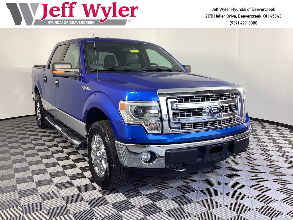 Clean CARFAX. ABS brakes, Alloy wheels, Compass, Electronic Stability Control, Illuminated entry, Low tire pressure warning, Remote keyless entry, SYNC Voice Activated Communication & Entertainment, Traction control. Jeff Wyler Hyundai of Beavercreek is excited to offer this great 2014 Ford F-150 XLT in Blue. Well equipped with: GVWR: 7,350 lbs Payload Package, ABS brakes, Alloy wheels, Compass, Electronic Stability Control, Illuminated entry, Low tire pressure warning, Remote keyless entry, SYNC Voice Activated Communication & Entertainment, Traction control, 17" Machined-Aluminum w/Painted Accents Wheels, 3.55 Axle Ratio, 4 Speakers, 4-Wheel Disc Brakes, Air Conditioning, AM/FM radio, Bumpers: chrome, CD player, Cloth 40/20/40 Front Seat, Delay-off headlights, Driver door bin, Driver vanity mirror, Dual front impact airbags, Dual front side impact airbags, Front anti-roll bar, Front Center Armrest w/Storage, Front fog lights, Front reading lights, Front wheel independent suspension, Fully automatic headlights, Occupant sensing airbag, Outside temperature display, Overhead airbag, Overhead console, Panic alarm, Passenger door bin, Passenger vanity mirror, Power door mirrors, Power steering, Power windows, Radio data system, Radio: AM/FM Stereo/Single-CD Player w/Clock, Rear reading lights, Rear step bumper, Security system, Speed control, Speed-sensing steering, Split folding rear seat, Steering wheel mounted audio controls, Tachometer, Tilt steering wheel, and Variably intermittent wipers.Awards: * 2014 KBB.com Brand Image AwardsCome see the excitement at Jeff Wyler Hyundai of Beavercreek! Visit us online at www.jeffwylerhyundaiofbeavercreek.com Proudly Serving: Cincinnati, Dayton, Centeville, Ketttering, Moraine,Beavercreek, Xenia,Oakwood, Trotwood, Vandalia, Kettering, Wright Patterson, Riverside, Engelwood, Miamisburg, Huber Heights, Springboro, Brookville, Fairborn, West Carrollton, Yellow Springs, Bellbrook, Springfield Columbus, Hamilton, West Chester, Monroe, Fairfield. PROUDLY SERVING: CINCINNATI, DAYTON,COLUMBUS, LOUISVILLE, LEXINGTON, INDIANAPOLIS,HAMILTON, FLORENCE, ALEXANDRIA, BEAVERCREEK, SPRINGDALE, WEST CHESTER, MONROE, FAIRFIELD, KENWOOD, NEWPORT AND ALL OF GREATER CINCINNATI OHIO, INDIANA, AND NORTHERN KENTUCKY.
