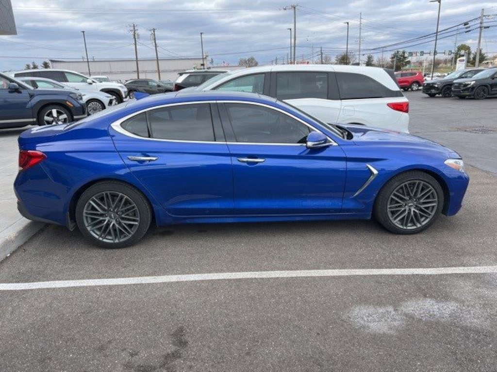 Clean CARFAX. Jeff Wyler Hyundai of Fairfield is very proud to offer this stunning-looking 2019 Genesis G70 2.0T Advanced in Blue. Well equipped with: Android Auto, Apple CarPlay, CALL NOW FOR YOUR VIP APPOINTMENT 513-870-9800, FULLY SERVICED w/RECORDS, GUARANTEED FINANCING!! NO MATTER YOUR SITUATION WE CAN GET AN APPROVAL!!, THE #1 Volume dealer in the region! Come see why for yourself Today!!, WE PAY MORE FOR YOUR TRADE!!, 4-Wheel Disc Brakes, 6 Speakers, ABS brakes, Air Conditioning, Alloy wheels, AM/FM radio: SiriusXM, Android Auto & Apple CarPlay, Anti-whiplash front head restraints, Auto High-beam Headlights, Auto-dimming Rear-View mirror, Automatic temperature control, Brake assist, Bumpers: body-color, Delay-off headlights, Driver door bin, Driver vanity mirror, Dual front impact airbags, Dual front side impact airbags, Electronic Stability Control, Emergency communication system: Genesis Connected Services, Exterior Parking Camera Rear, Four wheel independent suspension, Front anti-roll bar, Front Bucket Seats, Front Center Armrest, Front dual zone A/C, Front reading lights, Fully automatic headlights, Garage door transmitter: HomeLink, Heated door mirrors, Illuminated entry, Knee airbag, Leatherette Seat Trim, Low tire pressure warning, Multi-Adjustable Front Bucket Seats, Occupant sensing airbag, Outside temperature display, Overhead airbag, Overhead console, Panic alarm, Passenger door bin, Passenger vanity mirror, Power door mirrors, Power driver seat, Power passenger seat, Power steering, Power windows, Radio: AM/FM/HD Radio/SiriusXM Audio System, Rear anti-roll bar, Rear reading lights, Rear seat center armrest, Rear window defroster, Remote keyless entry, Security system, Speed control, Speed-Sensitive Wipers, Split folding rear seat, Steering wheel mounted audio controls, Tachometer, Telescoping steering wheel, Tilt steering wheel, Traction control, Trip computer, Turn signal indicator mirrors, Variably intermittent wipers, and Wheels: 18" x 8.0J Alloy. TO CHECK ON THE AVAILABILITY OF THIS VEHICLE REACH OUT TO ONE OF OUR TEAM MEMBERS!! ALSO SHOP ONLINE AT https://www.jeffwylerhyundaioffairfield.com/ Proudly Serving: Cincinnati, Dayton, Columbus, Louisville, Lexington, Indianapolis, Hamilton, Florence, Alexandria, Beavercreek, Springdale, West Chester, Monroe, Fairfield, Kenwood, Newport and all of greater Cincinnati Ohio, Indiana, and Northern Kentucky.