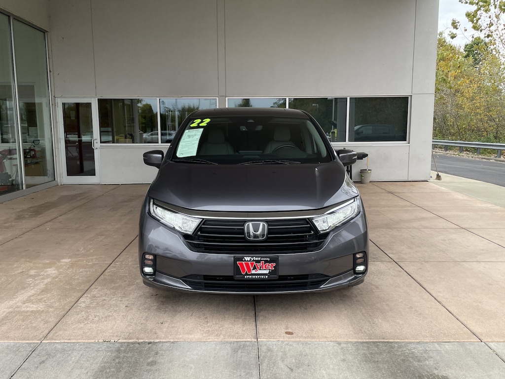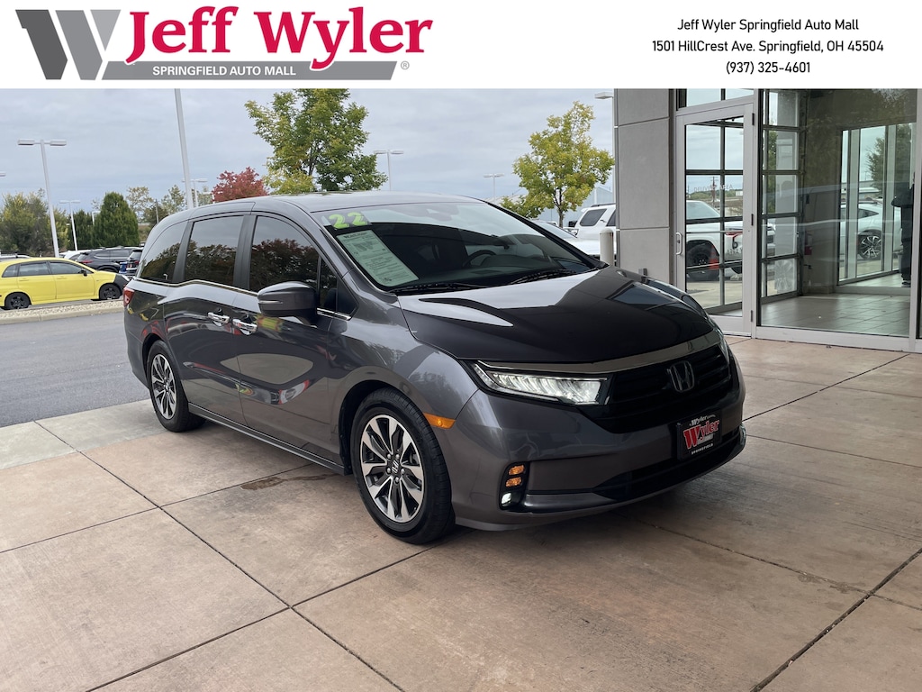Jeff Wyler Springfield Auto Mall is pumped up to offer this superb 2022 Honda Odyssey EX-L in Gray. Well equipped with: 18" Machine-Finished Alloy Wheels, 3.61 Axle Ratio, 3rd row seats: split-bench, 4-Wheel Disc Brakes, 7 Speakers, A/V remote: CabinControl, ABS brakes, Adaptive Cruise Control: Adaptive Cruise Control (ACC) with Low-Speed Follow, Air Conditioning, Alloy wheels, AM/FM radio: SiriusXM, Anti-whiplash front head restraints, Apple CarPlay/Android Auto, Auto High-beam Headlights, Auto-dimming Rear-View mirror, Automatic temperature control, Blind Spot Information (BSI) System warning, Brake assist, Bumpers: body-color, Delay-off headlights, Driver door bin, Driver vanity mirror, Driver's Seat Mounted Armrest, Dual front impact airbags, Dual front side impact airbags, Electronic Stability Control, Exterior Parking Camera Rear, Forward collision: Collision Mitigation Braking System (CMBS) + FCW mitigation, Four wheel independent suspension, Front anti-roll bar, Front Bucket Seats, Front dual zone A/C, Front fog lights, Front reading lights, Fully automatic headlights, Garage door transmitter: HomeLink, Heated door mirrors, Heated Front Bucket Seats, Heated front seats, Illuminated entry, Knee airbag, Lane departure: Lane Keeping Assist System (LKAS) active, Leather Seat Trim, Leather steering wheel, Low tire pressure warning, Memory seat, Occupant sensing airbag, Outside temperature display, Overhead airbag, Overhead console, Panic alarm, Passenger door bin, Passenger seat mounted armrest, Passenger vanity mirror, Power door mirrors, Power driver seat, Power Liftgate, Power moonroof, Power passenger seat, Power steering, Power windows, Radio data system, Radio: 160-Watt AM/FM/HD/SiriusXM Audio System, Rear air conditioning, Rear anti-roll bar, Rear reading lights, Rear seat center armrest, Rear window defroster, Rear window wiper, Reclining 3rd row seat, Remote keyless entry, Security system, Speed control, Speed-sensing steering, Speed-Sensitive Wipers, Split folding rear seat, Spoiler, Steering wheel mounted audio controls, Tachometer, Telescoping steering wheel, Tilt steering wheel, Traction control, Trip computer, Turn signal indicator mirrors, and Variably intermittent wipers. Ask about available certifications. Used vehicles 10 years of age or newer with less than 100,000 miles are eligible for the Wyler Assurance Program, but eligible vehicles must pass our reconditioning process and multi-point inspection. Provided the vehicle passes inspection, vehicles will be eligible for the 6 month/6,000 mile limited warranty. The 6 month/6,000 mile limited warranty is NOT available on AS-IS vehicles, wholesale vehicles, lease buyback/pass-thru vehicles or un-inspected vehicles. Note that this program can also apply to vehicles where the remaining factory coverage is less than 6 months or 6,000 miles. Please check the Federal Trade Commission (FTC) Buyers guide on the vehicle for full details as to whether or not warranty coverage may apply. Contact Dealer for additional details. The Wyler Assurance 6 month/6,000 Mile limited warranty ends 6 months from the date of the Retail Purchase Agreement (BUYERS ORDER) or when the vehicle's odometer registers 6,000 additional miles to the mileage listed on the BUYERS ORDER, whichever comes first. Your Deductible - The warranty holder on your contract pays the first $100 of each covered repair.