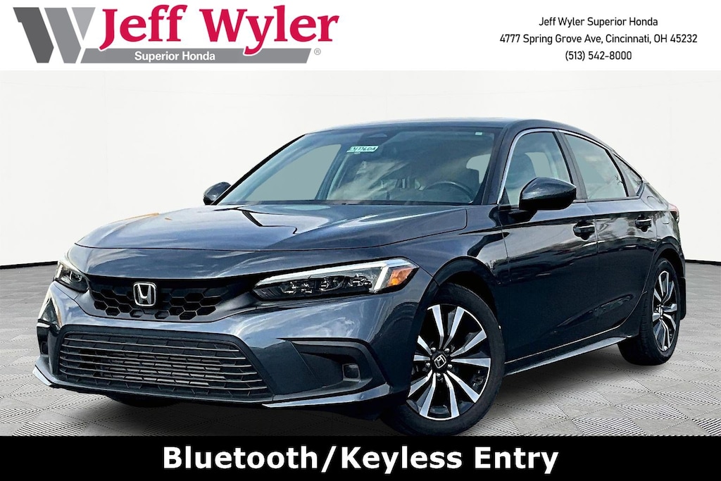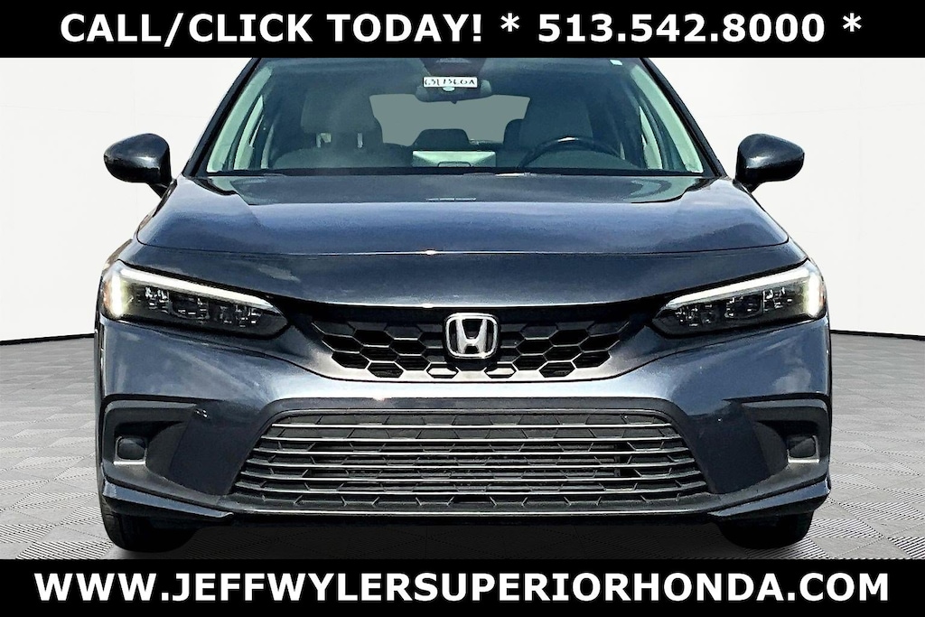Jeff Wyler Superior Honda is proud to offer this good-looking 2024 Honda Civic EX-L in Meteorite Gray Metallic. BLUETOOTH, LEATHER, MOONROOF SUNROOF, CLEAN CARFAX...NO ACCIDENTS, HONDA CERTIFIED!, RECENT SUPERIOR TRADE, BOUGHT, SERVICED AND TRADED AT SUPERIOR, and ONE OWNER Civic EX-L, HondaTrue Certified Certified, 4D Hatchback, 1.5L I4 DOHC 16V, CVT, FWD, Meteorite Gray Metallic, Black Leather, 17" Alloy Wheels, 4-Wheel Disc Brakes, 8 Speakers, ABS brakes, Adaptive Cruise Control: Adaptive Cruise Control (ACC) with Low-Speed Follow, Air Conditioning, Alloy wheels, AM/FM radio, Apple CarPlay/Android Auto, Auto High-beam Headlights, Automatic temperature control, Blind Spot Information (BSI) System warning, Brake assist, Bumpers: body-color, Delay-off headlights, Driver door bin, Driver vanity mirror, Dual front impact airbags, Dual front side impact airbags, Electronic Stability Control, Emergency communication system: HondaLink, Exterior Parking Cameras, Four wheel independent suspension, Front anti-roll bar, Front Bucket Seats, Front Center Armrest, Front dual zone A/C, Front reading lights, Fully automatic headlights, Heated door mirrors, Heated Front Bucket Seats, Heated front seats, Illuminated entry, Knee airbag, Lane departure: Lane Keeping Assist System (LKAS) active, Leather Shift Knob, Leather steering wheel, Leather-Trimmed Seating Surfaces, Low tire pressure warning, Occupant sensing airbag, Outside temperature display, Overhead airbag, Panic alarm, Passenger door bin, Passenger vanity mirror, Power door mirrors, Power driver seat, Power moonroof, Power steering, Power windows, Radio data system, Radio: 180-Watt Audio System, Rear anti-roll bar, Rear seat center armrest, Rear side impact airbag, Rear window defroster, Rear window wiper, Remote keyless entry, Security system, Speed control, Speed-sensing steering, Split folding rear seat, Steering wheel mounted audio controls, Tachometer, Telescoping steering wheel, Tilt steering wheel, Traction control, Trip computer, Variably intermittent wipers, and Voltmeter Our PRE-OWNED vehicles are put through a rigorous 167- POINT QUALITY ASSURANCE INSPECTION along with an average amount of over $1,400.00 SPENT to recondition each vehicle so we can be sure to deliver you the highest quality vehicle like you deserve! ***ONLINE PRICE DOES NOT INCLUDE WYLER FAMILY FIRST PACKAGE*** Stop by 4777 Spring Grove Ave. Road to see for yourself, or give us a call @ 283-209-1858 to schedule your test drive!Vehicle pricing includes all offers and incentives. Due to limited inventory, offers and pricing are all subject to change. Tax, Title, Tags and $387 doc fees are not included in vehicle price shown and must be paid by the purchaser. Doc fees vary by location. Financing w/approved credit. Mileage est. Based on current EPA estimates reflecting new EPA methods beginning w/ 2008 models. For comparison only. Do not compare to pre 2008 models. Actual mileage may vary based on how you drive and maintain your vehicle. Information on this site includes 3rd party data believed to be reliable, subject to change without notice. Jeff Wyler reserves the right to correct any errors and/or omissions in the compilation or presentation of this data and makes no representations express or implied to any prospective purchaser as to the vehicle's condition, specifications, history, equipment or equipment function, price or warranties. This vehicle may be subject to an open recall that has not been repaired. Please consult safercar.gov for more information on the current status. It is the responsibility of purchaser to confirm any data prior to purchase. Other than MSRP, all offers only apply to this vehicle and are subject to change. Vehicle prices are subject to change and all vehicles are subject to prior sale and may not be available when you are ready to purchase. Prices listed on any other website may not be accepted. Dealership advertises the sale of vehicles through a number of different channel