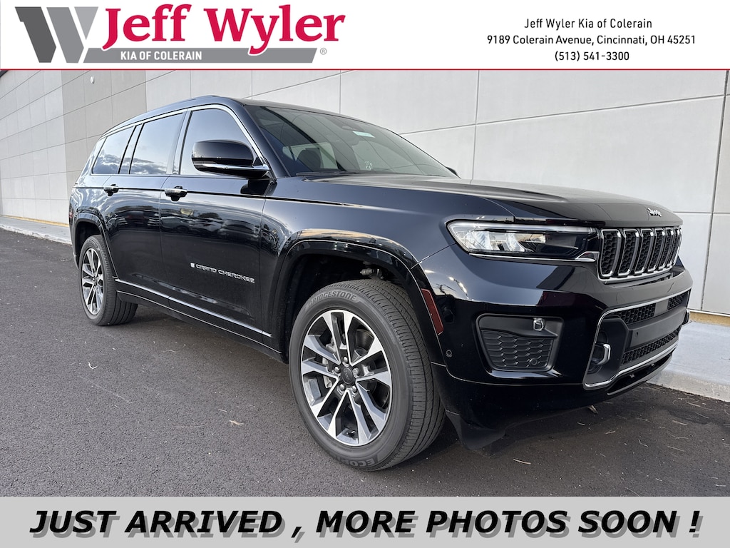 Jeff Wyler Kia of Colerain is pumped up to offer this handsome 2023 Jeep Grand Cherokee L Overland in Diamond Black Crystal Pearlcoat. Quick Order Package 22N, 10 Speakers, 3.45 Rear Axle Ratio, 3rd row seats: split-bench, 4-Wheel Disc Brakes, ABS brakes, Active Noise Control System, Adaptive suspension, Air Conditioning, Alloy wheels, AM/FM radio: SiriusXM with 360L, Anti-whiplash front head restraints, Audio memory, Auto High-beam Headlights, Auto-dimming door mirrors, Auto-dimming Rear-View mirror, Auto-leveling suspension, Automatic temperature control, Brake assist, Bumpers: body-color, Compass, Delay-off headlights, Driver door bin, Driver vanity mirror, Dual front impact airbags, Dual front side impact airbags, Electronic Stability Control, Emergency communication system, Four wheel independent suspension, Front anti-roll bar, Front Bucket Seats, Front Center Armrest w/Storage, Front dual zone A/C, Front fog lights, Front License Plate Bracket, Front reading lights, Fully automatic headlights, Garage door transmitter, Heated door mirrors, Heated front seats, Heated rear seats, Heated steering wheel, Illuminated entry, Knee airbag, Low tire pressure warning, Memory seat, Nappa Leather Seats, Navigation System, Normal Duty Suspension, Occupant sensing airbag, Outside temperature display, Overhead airbag, Overhead console, Panic alarm, Passenger door bin, Passenger vanity mirror, Power door mirrors, Power driver seat, Power Fold Seatbacks, Power Liftgate, Power moonroof, Power passenger seat, Power steering, Power windows, Radio data system, Radio: Uconnect 5 Nav w/10.1" Display, Rain sensing wipers, Rear air conditioning, Rear anti-roll bar, Rear reading lights, Rear window defroster, Rear window wiper, Reclining 3rd row seat, Remote keyless entry, Security system, Speed control, Speed-Sensitive Wipers, Split folding rear seat, Spoiler, Steering wheel memory, Steering wheel mounted audio controls, Tachometer, Telescoping steering wheel, Tilt steering wheel, Traction control, Trip computer, Turn signal indicator mirrors, Variably intermittent wipers, Ventilated front seats, Voltmeter, and Wheels: 20" x 8.5" Machined Face Aluminum Our PRE-OWNED vehicles are put through a rigorous 167- POINT QUALITY ASSURANCE INSPECTION along with an average amount of over $1,400.00 SPENT to recondition each vehicle so we can be sure to deliver you the highest quality vehicle like you deserve! ***ONLINE PRICE DOES NOT INCLUDE WYLER FAMILY FIRST PACKAGE***