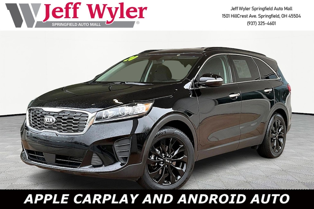 Jeff Wyler Springfield Auto Mall is pumped up to offer this attractive 2020 Kia Sorento S in Ebony Black. Well equipped with: 3.32 Axle Ratio, 3rd row seats: split-bench, 4-Wheel Disc Brakes, 6 Speakers, ABS brakes, Air Conditioning, Alloy wheels, AM/FM radio, Apple CarPlay & Android Auto, Automatic temperature control, Brake assist, Bumpers: body-color, Carpeted Floor Mats (7-Passenger), Delay-off headlights, Driver door bin, Driver vanity mirror, Dual front impact airbags, Dual front side impact airbags, Electronic Stability Control, Exterior Parking Camera Rear, Four wheel independent suspension, Front anti-roll bar, Front Bucket Seats, Front Center Armrest, Front dual zone A/C, Front reading lights, Fully automatic headlights, Heated door mirrors, Heated Front Bucket Seats, Heated front seats, Illuminated entry, Leather Shift Knob, Leather steering wheel, Low tire pressure warning, Occupant sensing airbag, Outside temperature display, Overhead airbag, Overhead console, Panic alarm, Passenger door bin, Passenger vanity mirror, Power door mirrors, Power driver seat, Power steering, Power windows, Radio data system, Radio: AM/FM/MP3 Audio System, Rear air conditioning, Rear anti-roll bar, Rear Parking Sensors, Rear seat center armrest, Rear window defroster, Rear window wiper, Remote keyless entry, Remote Start Push Button, Roof rack: rails only, Security system, Speed control, Speed-sensing steering, Split folding rear seat, Spoiler, Steering wheel mounted audio controls, Tachometer, Telescoping steering wheel, Tilt steering wheel, Traction control, Trip computer, Turn signal indicator mirrors, Variably intermittent wipers, Wheels: 19" x 7.5" Sport Black Alloy, and YES Essentials Cloth Seat Trim. Ask about available certifications. Used vehicles 10 years of age or newer with less than 100,000 miles are eligible for the Wyler Assurance Program, but eligible vehicles must pass our reconditioning process and multi-point inspection. Provided the vehicle passes inspection, vehicles will be eligible for the 6 month/6,000 mile limited warranty. The 6 month/6,000 mile limited warranty is NOT available on AS-IS vehicles, wholesale vehicles, lease buyback/pass-thru vehicles or un-inspected vehicles. Note that this program can also apply to vehicles where the remaining factory coverage is less than 6 months or 6,000 miles. Please check the Federal Trade Commission (FTC) Buyers guide on the vehicle for full details as to whether or not warranty coverage may apply. Contact Dealer for additional details. The Wyler Assurance 6 month/6,000 Mile limited warranty ends 6 months from the date of the Retail Purchase Agreement (BUYERS ORDER) or when the vehicle's odometer registers 6,000 additional miles to the mileage listed on the BUYERS ORDER, whichever comes first. Your Deductible - The warranty holder on your contract pays the first $100 of each covered repair.