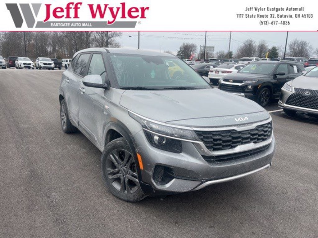 Jeff Wyler Eastgate Auto Mall is honored to offer this good-looking 2023 Kia Seltos LX in Steel Gray. Well equipped with: 4-Wheel Disc Brakes, 6 Speakers, 6.052 Axle Ratio, ABS brakes, Air Conditioning, Alloy wheels, AM/FM radio, Apple CarPlay & Android Auto, Auto High-beam Headlights, Brake assist, Bumpers: body-color, Carpet Floor Mats, Cloth Seat Trim, Delay-off headlights, Driver door bin, Driver vanity mirror, Dual front impact airbags, Dual front side impact airbags, Electronic Stability Control, Exterior Parking Camera Rear, Four wheel independent suspension, Front anti-roll bar, Front Bucket Seats, Front Center Armrest, Front reading lights, Fully automatic headlights, Illuminated entry, Low tire pressure warning, Occupant sensing airbag, Outside temperature display, Overhead airbag, Overhead console, Panic alarm, Passenger door bin, Passenger vanity mirror, Power door mirrors, Power steering, Power windows, Radio: AM/FM/MP3 Display Audio, Rear window defroster, Rear window wiper, Remote keyless entry, Security system, Speed control, Speed-sensing steering, Split folding rear seat, Spoiler, Steering wheel mounted audio controls, Tachometer, Telescoping steering wheel, Tilt steering wheel, Traction control, Trip computer, Variably intermittent wipers, and Wheels: 17" Alloy w/Dark Gray Finish. Clean CARFAX. Ask about available certifications. Used vehicles 10 years of age or newer with less than 100,000 miles are eligible for the Wyler Assurance Program, but eligible vehicles must pass our reconditioning process and multi-point inspection. Provided the vehicle passes inspection, vehicles will be eligible for the 6 month/6,000 mile limited warranty. The 6 month/6,000 mile limited warranty is NOT available on AS-IS vehicles, wholesale vehicles, lease buyback/pass-thru vehicles or un-inspected vehicles. Note that this program can also apply to vehicles where the remaining factory coverage is less than 6 months or 6,000 miles. Please check the Federal Trade Commission (FTC) Buyers guide on the vehicle for full details as to whether or not warranty coverage may apply. Contact Dealer for additional details. The Wyler Assurance 6 month/6,000 Mile limited warranty ends 6 months from the date of the Retail Purchase Agreement (BUYERS ORDER) or when the vehicle's odometer registers 6,000 additional miles to the mileage listed on the BUYERS ORDER, whichever comes first. Your Deductible - The warranty holder on your contract pays the first $100 of each covered repair.