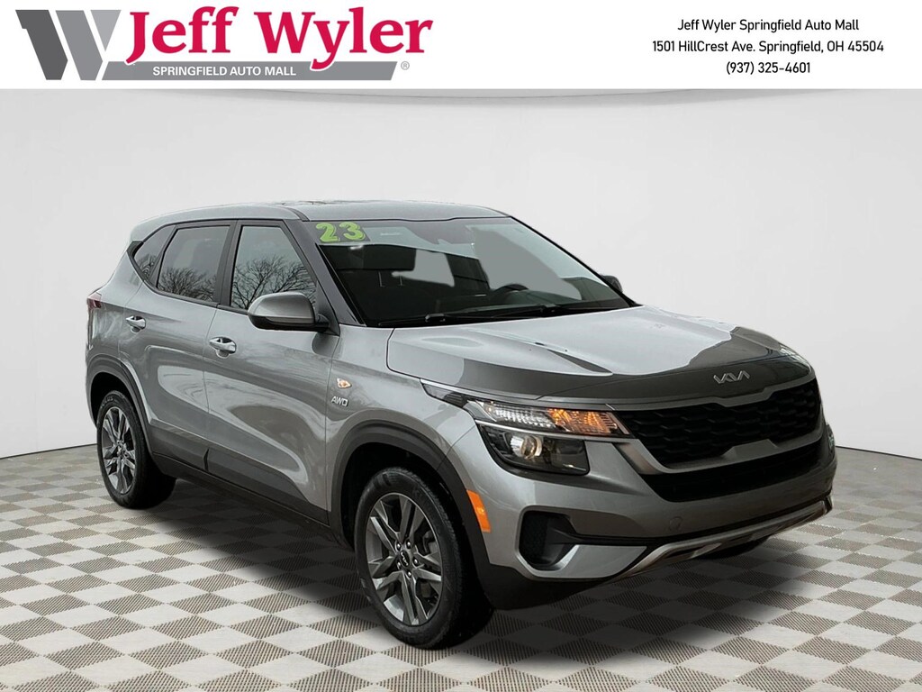 Jeff Wyler Springfield Auto Mall is excited to offer this great-looking 2023 Kia Seltos LX in Steel Gray. Well equipped with: 4-Wheel Disc Brakes, 6 Speakers, 6.052 Axle Ratio, ABS brakes, Air Conditioning, Alloy wheels, AM/FM radio, Apple CarPlay & Android Auto, Auto High-beam Headlights, Brake assist, Bumpers: body-color, Cargo Mat, Carpet Floor Mats, Cloth Seat Trim, Delay-off headlights, Driver door bin, Driver vanity mirror, Dual front impact airbags, Dual front side impact airbags, Electronic Stability Control, Exterior Parking Camera Rear, Four wheel independent suspension, Front anti-roll bar, Front Bucket Seats, Front Center Armrest, Front reading lights, Fully automatic headlights, Illuminated entry, Low tire pressure warning, Occupant sensing airbag, Outside temperature display, Overhead airbag, Overhead console, Panic alarm, Passenger door bin, Passenger vanity mirror, Power door mirrors, Power steering, Power windows, Radio: AM/FM/MP3 Display Audio, Rear window defroster, Rear window wiper, Remote keyless entry, Security system, Speed control, Speed-sensing steering, Split folding rear seat, Spoiler, Steering wheel mounted audio controls, Tachometer, Telescoping steering wheel, Tilt steering wheel, Traction control, Trip computer, Variably intermittent wipers, and Wheels: 17" Alloy w/Dark Gray Finish. Ask about available certifications. Used vehicles 10 years of age or newer with less than 100,000 miles are eligible for the Wyler Assurance Program, but eligible vehicles must pass our reconditioning process and multi-point inspection. Provided the vehicle passes inspection, vehicles will be eligible for the 6 month/6,000 mile limited warranty. The 6 month/6,000 mile limited warranty is NOT available on AS-IS vehicles, wholesale vehicles, lease buyback/pass-thru vehicles or un-inspected vehicles. Note that this program can also apply to vehicles where the remaining factory coverage is less than 6 months or 6,000 miles. Please check the Federal Trade Commission (FTC) Buyers guide on the vehicle for full details as to whether or not warranty coverage may apply. Contact Dealer for additional details. The Wyler Assurance 6 month/6,000 Mile limited warranty ends 6 months from the date of the Retail Purchase Agreement (BUYERS ORDER) or when the vehicle's odometer registers 6,000 additional miles to the mileage listed on the BUYERS ORDER, whichever comes first. Your Deductible - The warranty holder on your contract pays the first $100 of each covered repair.