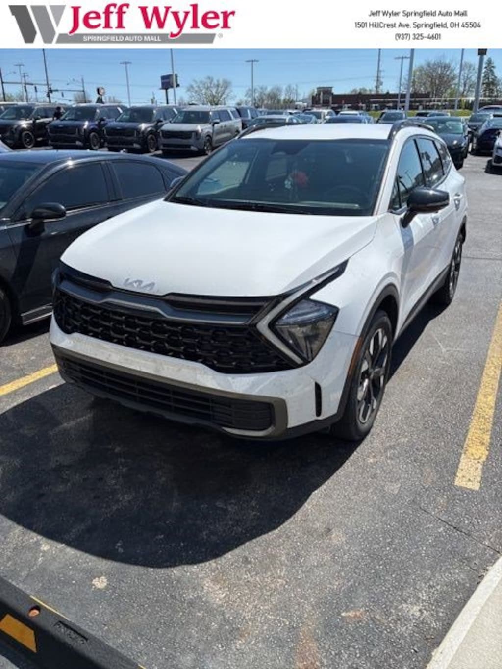 Jeff Wyler Springfield Auto Mall is pumped up to offer this charming 2023 Kia Sportage X-Line in Glacial White Pearl. Well equipped with: 4-Wheel Disc Brakes, 6 Speakers, ABS brakes, Air Conditioning, Alloy wheels, AM/FM radio: SiriusXM, Apple CarPlay & Android Auto, Auto High-beam Headlights, Automatic temperature control, Axle Ratio: 3.648, Brake assist, Bumpers: body-color, Carpet Floor Mats X-Line, Compass, Delay-off headlights, Driver door bin, Driver vanity mirror, Dual front impact airbags, Dual front side impact airbags, Electronic Stability Control, Emergency communication system, Four wheel independent suspension, Front anti-roll bar, Front Bucket Seats, Front Center Armrest, Front dual zone A/C, Fully automatic headlights, harman/kardon® Speakers, Heated door mirrors, Heated Front Bucket Seats, Heated front seats, Illuminated entry, Leather Shift Knob, Leather steering wheel, Low tire pressure warning, Navigation System, Occupant sensing airbag, Outside temperature display, Overhead airbag, Overhead console, Panic alarm, Passenger door bin, Passenger vanity mirror, Power door mirrors, Power driver seat, Power steering, Power windows, Premium Leatherette Seat Trim, Radio: AM/FM/HD Audio System, Rain sensing wipers, Rear anti-roll bar, Rear seat center armrest, Rear window defroster, Rear window wiper, Remote keyless entry, Security system, Speed control, Speed-sensing steering, Split folding rear seat, Spoiler, Steering wheel mounted audio controls, Tachometer, Telescoping steering wheel, Tilt steering wheel, Traction control, Trip computer, Turn signal indicator mirrors, Variably intermittent wipers, and Wheels: 19" Gloss Black Alloy. Ask about available certifications. Used vehicles 10 years of age or newer with less than 100,000 miles are eligible for the Wyler Assurance Program, but eligible vehicles must pass our reconditioning process and multi-point inspection. Provided the vehicle passes inspection, vehicles will be eligible for the 6 month/6,000 mile limited warranty. The 6 month/6,000 mile limited warranty is NOT available on AS-IS vehicles, wholesale vehicles, lease buyback/pass-thru vehicles or un-inspected vehicles. Note that this program can also apply to vehicles where the remaining factory coverage is less than 6 months or 6,000 miles. Please check the Federal Trade Commission (FTC) Buyers guide on the vehicle for full details as to whether or not warranty coverage may apply. Contact Dealer for additional details. The Wyler Assurance 6 month/6,000 Mile limited warranty ends 6 months from the date of the Retail Purchase Agreement (BUYERS ORDER) or when the vehicle's odometer registers 6,000 additional miles to the mileage listed on the BUYERS ORDER, whichever comes first. Your Deductible - The warranty holder on your contract pays the first $100 of each covered repair.