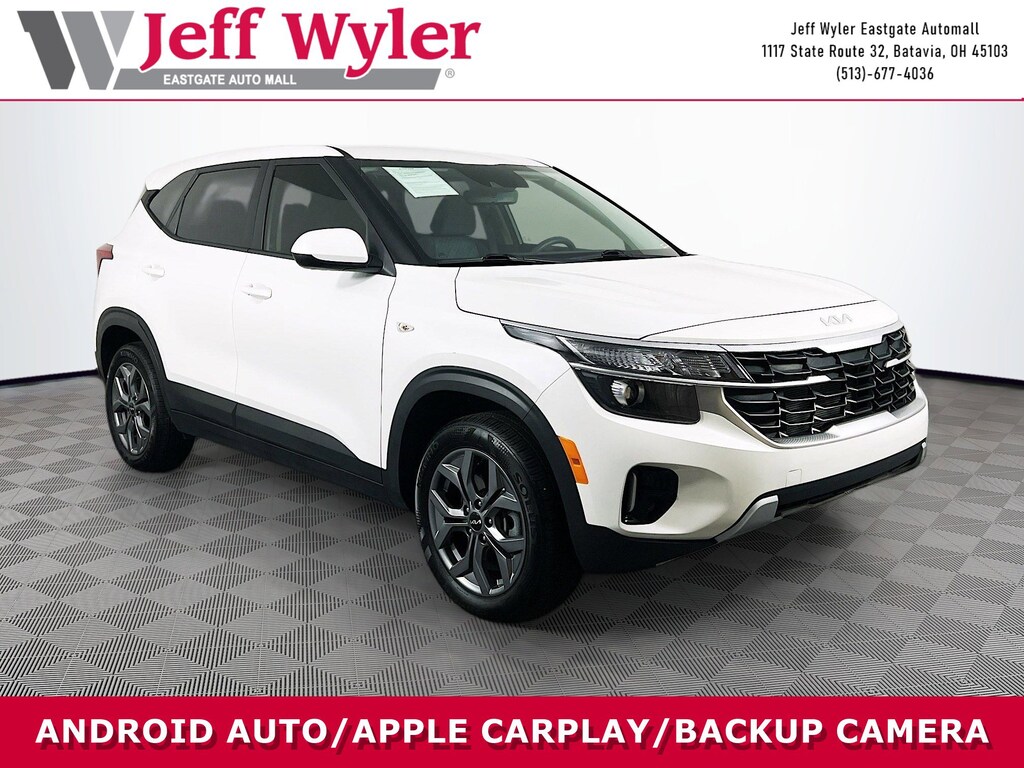 Jeff Wyler Eastgate Auto Mall is delighted to offer this attractive 2025 Kia Seltos LX in Snow White Pearl. Well equipped with: 4-Wheel Disc Brakes, 6 Speakers, ABS brakes, Air Conditioning, Alloy wheels, AM/FM radio, Apple CarPlay & Android Auto, Auto High-beam Headlights, Brake assist, Bumpers: body-color, Cloth Seat Trim, Delay-off headlights, Driver door bin, Driver vanity mirror, Dual front impact airbags, Dual front side impact airbags, Electronic Stability Control, Exterior Parking Camera Rear, Four wheel independent suspension, Front anti-roll bar, Front Bucket Seats, Front Center Armrest, Front reading lights, Fully automatic headlights, Illuminated entry, Low tire pressure warning, Occupant sensing airbag, Outside temperature display, Overhead airbag, Overhead console, Panic alarm, Passenger door bin, Passenger vanity mirror, Power door mirrors, Power steering, Power windows, Radio: AM/FM Display Audio System, Rear window defroster, Rear window wiper, Remote keyless entry, Security system, Speed control, Speed-sensing steering, Split folding rear seat, Spoiler, Steering wheel mounted audio controls, Tachometer, Telescoping steering wheel, Tilt steering wheel, Traction control, Trip computer, Variably intermittent wipers, and Wheels: 17" Alloy w/Dark Gray Finish. CARFAX One-Owner. Clean CARFAX. Ask about available certifications. Used vehicles 10 years of age or newer with less than 100,000 miles are eligible for the Wyler Assurance Program, but eligible vehicles must pass our reconditioning process and multi-point inspection. Provided the vehicle passes inspection, vehicles will be eligible for the 6 month/6,000 mile limited warranty. The 6 month/6,000 mile limited warranty is NOT available on AS-IS vehicles, wholesale vehicles, lease buyback/pass-thru vehicles or un-inspected vehicles. Note that this program can also apply to vehicles where the remaining factory coverage is less than 6 months or 6,000 miles. Please check the Federal Trade Commission (FTC) Buyers guide on the vehicle for full details as to whether or not warranty coverage may apply. Contact Dealer for additional details. The Wyler Assurance 6 month/6,000 Mile limited warranty ends 6 months from the date of the Retail Purchase Agreement (BUYERS ORDER) or when the vehicle's odometer registers 6,000 additional miles to the mileage listed on the BUYERS ORDER, whichever comes first. Your Deductible - The warranty holder on your contract pays the first $100 of each covered repair.