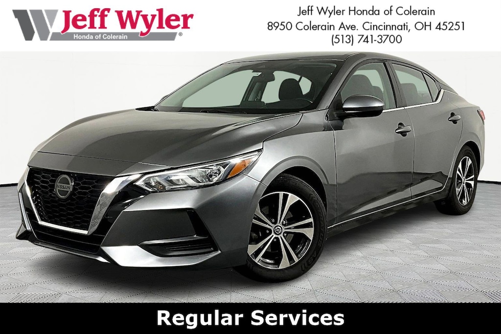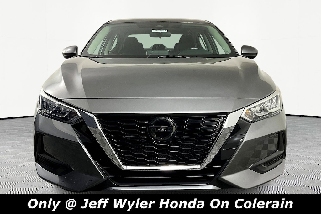 Jeff Wyler Honda of Colerain is honored to offer this wonderful 2021 Nissan Sentra SV in Gun Metallic. Well equipped with: 16" Alloy Wheels, 4-Wheel Disc Brakes, 6 Speakers, ABS brakes, Air Conditioning, Alloy wheels, AM/FM radio: SiriusXM, Auto High-beam Headlights, Automatic temperature control, Blind Spot Warning, Brake assist, Bumpers: body-color, Delay-off headlights, Driver door bin, Driver vanity mirror, Dual front impact airbags, Dual front side impact airbags, Electronic Stability Control, Four wheel independent suspension, Front anti-roll bar, Front Bucket Seats, Front Center Armrest, Front dual zone A/C, Front reading lights, Fully automatic headlights, Heated door mirrors, Illuminated entry, Knee airbag, Low tire pressure warning, NissanConnect featuring Apple CarPlay and Android Auto, Occupant sensing airbag, Outside temperature display, Overhead airbag, Overhead console, Panic alarm, Passenger door bin, Passenger vanity mirror, Power door mirrors, Power steering, Power windows, Radio data system, Radio: AM/FM w/RDS/MP3/Aux-In, Rear anti-roll bar, Rear Parking Sensors, Rear seat center armrest, Rear side impact airbag, Rear window defroster, Remote keyless entry, Security system, Speed control, Speed-sensing steering, Split folding rear seat, Steering wheel mounted audio controls, Tachometer, Telescoping steering wheel, Tilt steering wheel, Traction control, Trip computer, Upgraded Cloth Seat Trim, and Variably intermittent wipers.