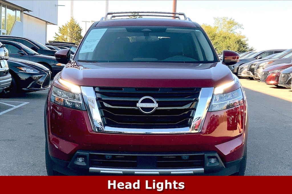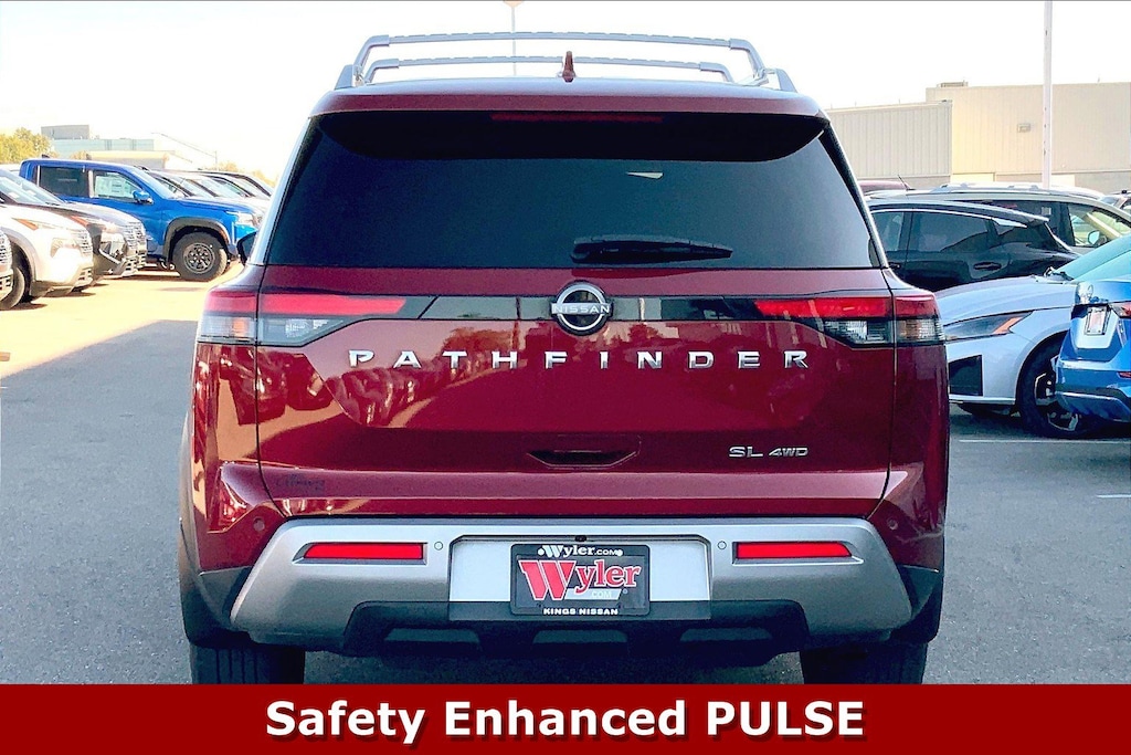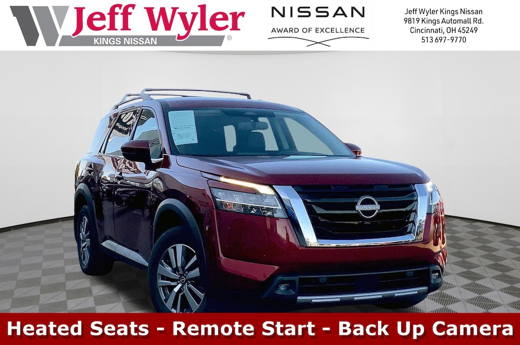 Jeff Wyler Kings Nissan is delighted to offer this attractive 2022 Nissan Pathfinder SL in Scarlet Ember Tintcoat. Well equipped with: 4WD, 18" Machined Alloy Wheels, 3rd row seats: bench, 4-Wheel Disc Brakes, 6 Speakers, ABS brakes, Air Conditioning, Alloy wheels, AM/FM radio: SiriusXM, Auto High-beam Headlights, Auto-dimming Rear-View mirror, Automatic temperature control, Axle Ratio: TBD, Bench Seat Carpeted Floor Mats (Set of 4), Black Splash Guards (Set of 4), Brake assist, Bumpers: body-color, Cross Bars, Delay-off headlights, Driver door bin, Driver vanity mirror, Dual front impact airbags, Dual front side impact airbags, Electronic Stability Control, Emergency communication system: NissanConnect Services, Exterior Parking Camera Rear, Four wheel independent suspension, Front anti-roll bar, Front Bucket Seats, Front Center Armrest, Front dual zone A/C, Front fog lights, Front reading lights, Fully automatic headlights, Garage door transmitter: HomeLink, Heated door mirrors, Heated Front Bucket Seats, Heated front seats, Heated steering wheel, Illuminated entry, Knee airbag, Leather Seating Surfaces, Leather steering wheel, Low tire pressure warning, Navigation system: NissanConnect Navigation, NissanConnect w/Navigation & Services, Occupant sensing airbag, Outside temperature display, Overhead airbag, Overhead console, Panic alarm, Passenger door bin, Passenger vanity mirror, Power door mirrors, Power driver seat, Power Liftgate, Power passenger seat, Power steering, Power windows, Radio data system, Radio: AM/FM Audio System, Rear air conditioning, Rear anti-roll bar, Rear reading lights, Rear seat center armrest, Rear side impact airbag, Rear window defroster, Rear window wiper, Reclining 3rd row seat, Remote keyless entry, Security system, Speed control, Speed-sensing steering, Split folding rear seat, Spoiler, Steering wheel mounted audio controls, Tachometer, Telescoping steering wheel, Tilt steering wheel, Traction control, Trip computer, Turn signal indicator mirrors, and Variably intermittent wipers.Ask about available certifications.