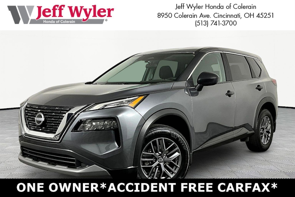 Jeff Wyler Honda of Colerain is proud to offer this fantastic-looking 2023 Nissan Rogue S in Gun Metallic. Well equipped with: 17" Aluminum Alloy Wheels, 4 Speakers, 4-Wheel Disc Brakes, 5.604 Axle Ratio, ABS brakes, Air Conditioning, Alloy wheels, AM/FM Radio, AM/FM radio: SiriusXM, Auto High-beam Headlights, Black Splash Guards (Set of 4), Blind Spot Warning, Brake assist, Bumpers: body-color, Chrome Rear Bumper Protector, Cloth Seat Trim, Delay-off headlights, Driver door bin, Driver vanity mirror, Dual front impact airbags, Dual front side impact airbags, Electronic Stability Control, First Aid Kit, Floor Mats w/1-Piece Cargo Area Protector, Four wheel independent suspension, Front anti-roll bar, Front Bucket Seats, Front Center Armrest, Front reading lights, Fully automatic headlights, Illuminated entry, Knee airbag, Low tire pressure warning, NissanConnect featuring Apple CarPlay and Android Auto, Occupant sensing airbag, Outside temperature display, Overhead airbag, Overhead console, Panic alarm, Passenger door bin, Passenger vanity mirror, Power door mirrors, Power steering, Power windows, Radio data system, Rear anti-roll bar, Rear Parking Sensors, Rear seat center armrest, Rear side impact airbag, Rear window defroster, Rear window wiper, Remote keyless entry, Speed control, Speed-Sensitive Wipers, Split folding rear seat, Spoiler, Steering wheel mounted audio controls, Tachometer, Telescoping steering wheel, Tilt steering wheel, Traction control, Trip computer, USB Charging Cable Set - Nissan, and Variably intermittent wipers.