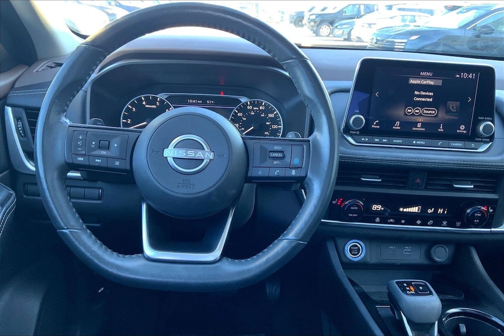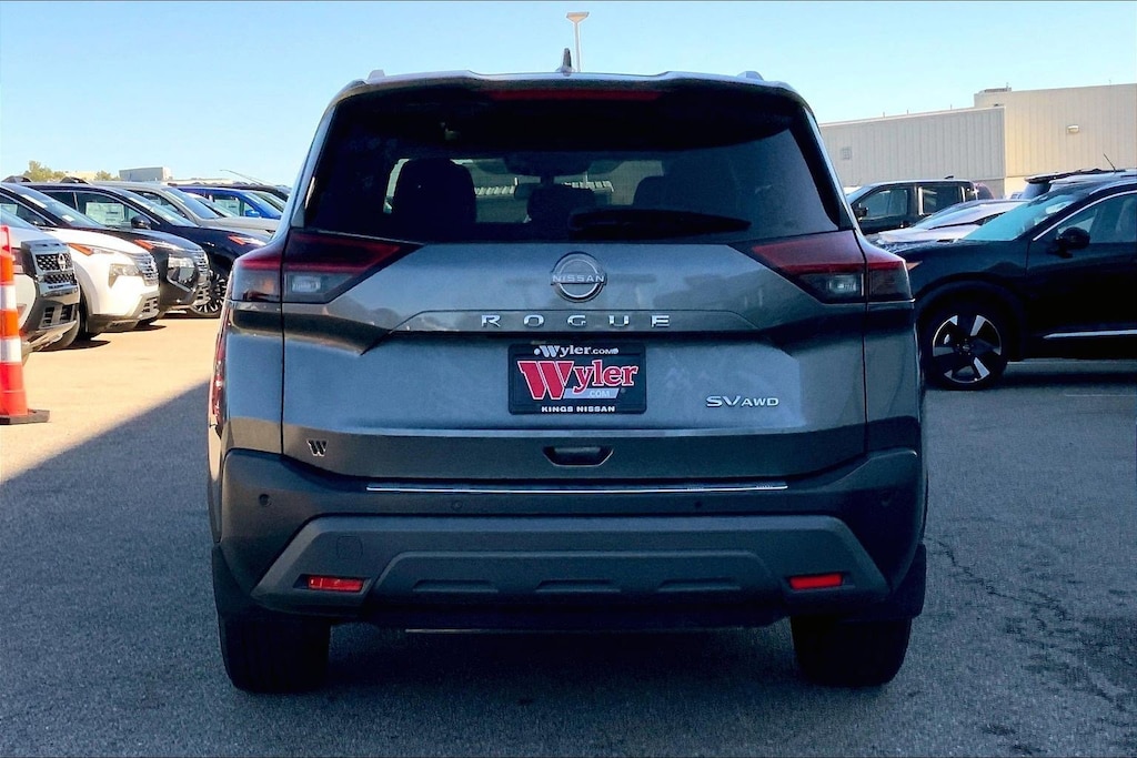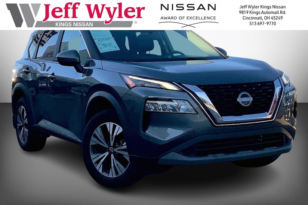 Jeff Wyler Kings Nissan is pumped up to offer this superb-looking 2023 Nissan Rogue SV in Gun Metallic. Well equipped with: SV Premium B Package (Heated Driver & Front Passenger Seats, Heated Leather Wrapped Steering Wheel, Leatherette Door Trim Inserts w/Stitch, Panoramic Moonroof, Power Liftgate, PRIMATEX Leatherette Seat Trim, Rear Door Sunshades, Rear Personal Lights, Security Alarm, and Silver Painted Roof Rails), AWD, 18" Aluminum Alloy Wheels, 4-Wheel Disc Brakes, 5.604 Axle Ratio, 6 Speakers, ABS brakes, Air Conditioning, Alloy wheels, AM/FM Radio, AM/FM radio: SiriusXM, Auto High-beam Headlights, Automatic temperature control, Black Splash Guards (Set of 4), Brake assist, Bumpers: body-color, Chrome Rear Bumper Protector, Cloth Seat Trim, Delay-off headlights, Driver door bin, Driver vanity mirror, Dual front impact airbags, Dual front side impact airbags, Electronic Stability Control, Emergency communication system: NissanConnect Services, First Aid Kit, Floor Mats w/1-Piece Cargo Area Protector, Four wheel independent suspension, Front anti-roll bar, Front Bucket Seats, Front Center Armrest, Front dual zone A/C, Front reading lights, Fully automatic headlights, Heated door mirrors, Illuminated entry, Knee airbag, Low tire pressure warning, NissanConnect featuring Apple CarPlay and Android Auto, Occupant sensing airbag, Outside temperature display, Overhead airbag, Overhead console, Panic alarm, Passenger door bin, Passenger vanity mirror, Power door mirrors, Power driver seat, Power steering, Power windows, Radio data system, Rear anti-roll bar, Rear Parking Sensors, Rear seat center armrest, Rear side impact airbag, Rear window defroster, Rear window wiper, Remote keyless entry, Speed control, Speed-Sensitive Wipers, Split folding rear seat, Spoiler, Steering wheel mounted audio controls, Tachometer, Telescoping steering wheel, Tilt steering wheel, Traction control, Trip computer, and Variably intermittent wipers.Ask about available certifications.
