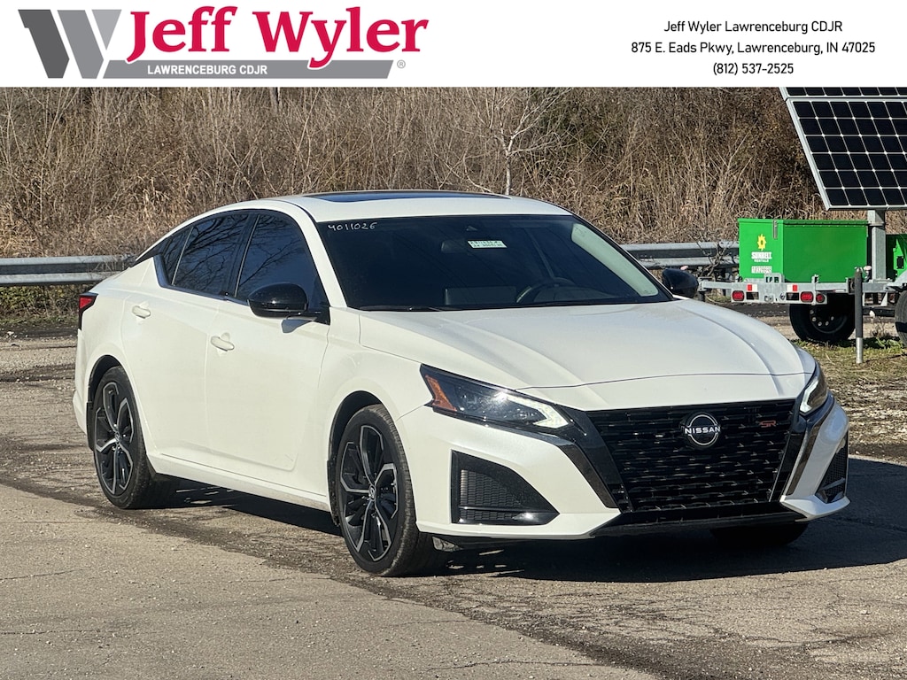Jeff Wyler Chrysler Dodge Jeep of Lawrenceburg is proud to offer this fantastic-looking 2024 Nissan Altima 2.5 SR in Pearl White Tricoat. SR Premium Package (2-Way Driver Power Lumbar Support, 4-Way Power Passenger Seat, Heated Front Seats, Leather-Appointed Seat Trim, NissanConnect, Premium Sport Interior Finishers, and Single Panel Moonroof), CVT with Xtronic, 4-Wheel Disc Brakes, 6 Speakers, ABS brakes, Air Conditioning, Alloy wheels, AM/FM radio: SiriusXM, Auto High-beam Headlights, Blind Spot Warning, Body-Colored Splash Guards, Brake assist, Bumpers: body-color, Delay-off headlights, Driver door bin, Driver vanity mirror, Dual front impact airbags, Dual front side impact airbags, Electronic Stability Control, Four wheel independent suspension, Front anti-roll bar, Front Bucket Seats, Front Center Armrest, Front reading lights, Fully automatic headlights, Illuminated entry, Knee airbag, Leather Shift Knob, Low tire pressure warning, NissanConnect featuring Apple CarPlay, Occupant sensing airbag, Outside temperature display, Overhead airbag, Overhead console, Panic alarm, Passenger door bin, Passenger vanity mirror, Power door mirrors, Power driver seat, Power steering, Power windows, Radio data system, Radio: AM/FM Audio System, Rear anti-roll bar, Rear Parking Sensors, Rear reading lights, Rear seat center armrest, Rear side impact airbag, Rear window defroster, Remote keyless entry, Security system, Speed control, Speed-sensing steering, Speed-Sensitive Wipers, Split folding rear seat, Sport Seat Trim, SR Floor Mats/Trunk Mat/Hideaway Nets, Steering wheel mounted audio controls, Tachometer, Telescoping steering wheel, Tilt steering wheel, Traction control, Trip computer, Trunk Organizer Tray, Unique Sport Seats, Variably intermittent wipers, and Wheels: 19" Sport Alloy Our PRE-OWNED vehicles are put through a rigorous 167- POINT QUALITY ASSURANCE INSPECTION along with an average amount of over $1,400.00 SPENT to recondition each vehicle so we can be sure to deliver you the highest quality vehicle like you deserve! ***ONLINE PRICE DOES NOT INCLUDE WYLER FAMILY FIRST PACKAGE*** Stop by 4136 Shelbyville Road to see for yourself, or give us a call @ 502-897-3151 to schedule your test drive! Ask about available certifications.