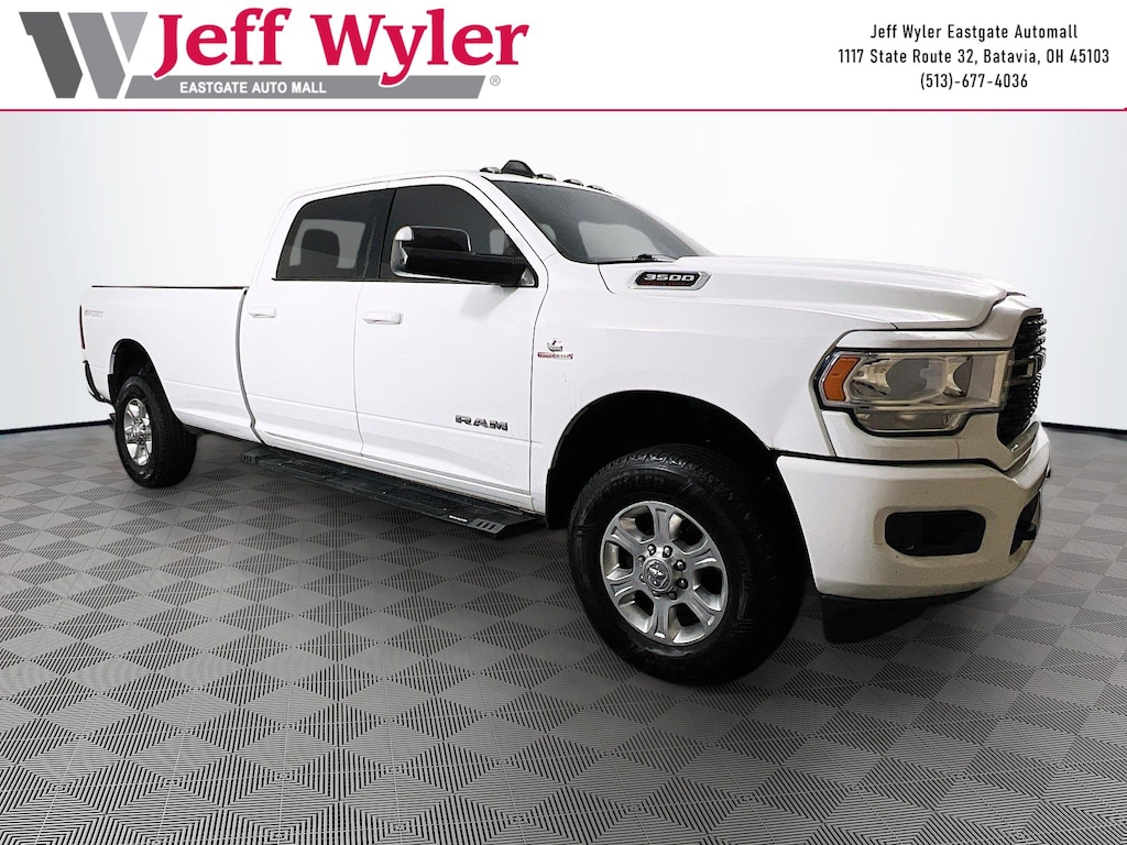 Jeff Wyler Eastgate Auto Mall is honored to offer this great-looking 2022 Ram 3500 Big Horn in Bright White Clearcoat. Well equipped with: Cold Weather Group (Engine Block Heater and MOPAR Winter Front Grille Cover), Heavy Duty Snow Plow Prep Group (220 Amp Alternator), Level An Equipment Group (2 Way Rear Headrest Seat, 2nd Row In Floor Storage Bins, 4 Way Front Headrests, 40/20/40 Split Bench Seat, Auto-Dimming Rear-View Mirror, Center Hub, Center Stack Storage Drawer, Dual Glove Boxes, Foam Bottle Insert (Door Trim Panel), Folding Flat Load Floor Storage, Footwell Courtesy Lamp, Front Armrest w/Cupholders, Front Center Seat Cushion Storage, Front Fog Lamps, Front Seat Back Map Pockets, Glove Box Lamp, Leather Wrapped Steering Wheel, Locking Lower Glove Box, Manual Adjust 4-Way Front Passenger Seat, Power 2-Way Driver Lumbar Adjust, Power Adjust 8-Way Driver Seat, Power Adjustable Pedals, Premium Cloth 40/20/40 Bench Seat, Rear 60/40 Folding Seat, Rear Dome w/On/Off Switch Lamp, Steering Wheel Mounted Audio Controls, Storage Tray, Sun Visors w/Illuminated Vanity Mirrors, Universal Garage Door Opener, and Wheels: 18" x 8.0" Polished Aluminum), Quick Order Package 21Z Big Horn, Sport Appearance Package (Black Interior Accents, Body Color Door Handles, Body Color Grille Surround, Painted Front Bumper, Painted Rear Bumper, and Sport Decal), 12" Touchscreen Display, 3.73 Axle Ratio, 4-Wheel Disc Brakes, 4G LTE Wi-Fi Hot Spot, 6 Speakers, 8.4" Touchscreen Display, 9 Alpine Speakers w/Subwoofer, ABS brakes, Active Noise Control System, Air Conditioning, Air Conditioning ATC w/Dual Zone Control, Alexa Built-In, All R1 High Radios, All Radio Equipped Vehicles, AM/FM radio: SiriusXM, Apple CarPlay, Apple CarPlay/Android Auto, Bluetooth Handsfree Phone & Audio, Brake assist, Bumpers: chrome, Clearance Lamps, Cloth 40/20/40 Bench Seat, Cluster 7.0" TFT Color Display, Compass, Connected Travel & Traffic Services, Connectivity - US/Canada, Delay-off headlights, Disassociated Touchscreen Display, Driver door bin, Dual Alternators Rated At 440 Amps, Dual front impact airbags, Dual front side impact airbags, Electronic Stability Control, Electronically Controlled Throttle, For Details Visit DriveUconnect.com, For More Info, Call 800-643-2112, Front anti-roll bar, Front Center Armrest w/Storage, Front License Plate Bracket, Front reading lights, Fully automatic headlights, Global Telematics Box Module (TBM), Google Android Auto, GPS Antenna Input, GPS Navigation, HD Radio, Heated door mirrors, Illuminated entry, Integrated Voice Command w/Bluetooth, LED Bed Lighting, Low tire pressure warning, Manual Adjust 4-Way Driver Seat, MOPAR Spray In Bedliner, Occupant sensing airbag, Off-Road Information Pages, Outside temperature display, Overhead airbag, Overhead console, Panic alarm, ParkSense Front/Rear Park Assist System, ParkView Rear Back-Up Camera, Passenger door bin, Passenger vanity mirror, Power door mirrors, Power steering, Power windows, Radio data system, Radio: Uconnect 5 Nav w/12.0" Display, Radio: Uconnect 5 w/8.4" Display, Rear Folding Seat, Rear seat center armrest, Rear step bumper, Remote keyless entry, Remote Start System, Selectable Tire Fill Alert, SiriusXM Radio Service, SiriusXM Satellite Radio, SiriusXM w/360L, Speed control, Tachometer, Tilt steering wheel, Tip Start, Traction control, Trip computer, Turn signal indicator mirrors, Variably intermittent wipers, Voltmeter, and Wheels: 18" x 8.0" Steel Chrome ClaD. CARFAX One-Owner. Clean CARFAX. Ask about available certifications. Used vehicles 10 years of age or newer with less than 100,000 miles are eligible for the Wyler Assurance Program, but eligible vehicles must pass our reconditioning process and multi-point inspection. Provided the vehicle passes inspection, vehicles will be eligible for the 6 month/6,000 mile limited warranty. The 6 month/6,000 mile limited warranty is NOT available on AS-IS vehicles, wholesale vehicles, lease buyback/pass-thru vehicles or un-inspec