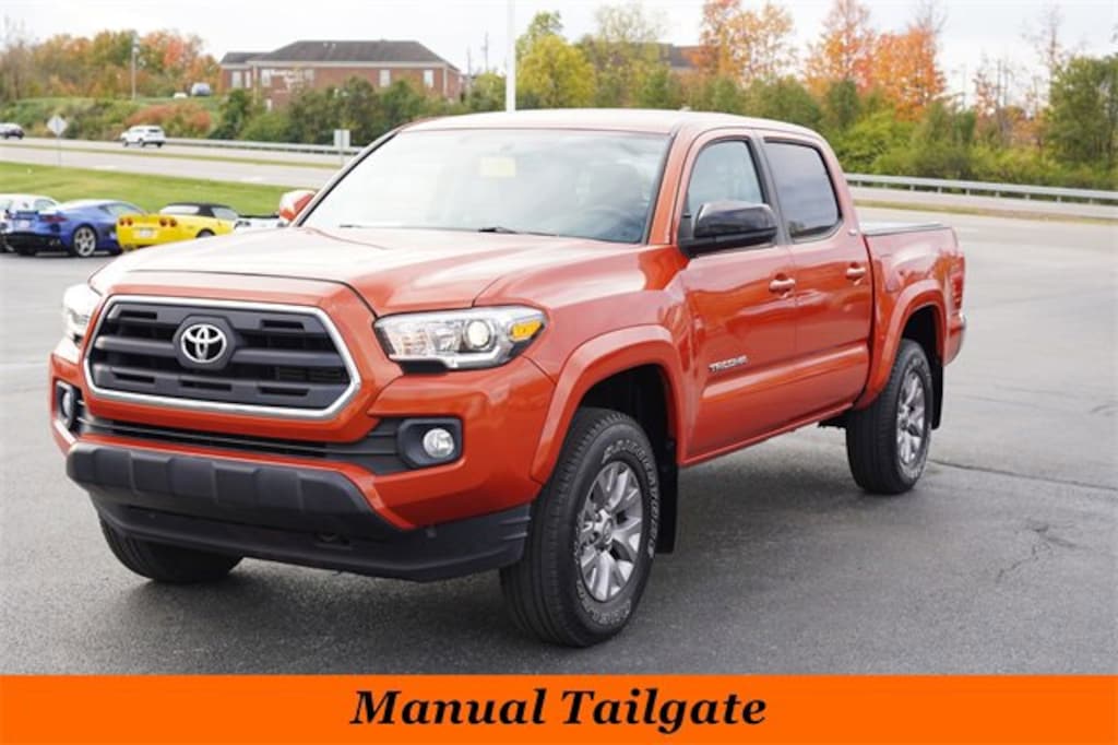 Jeff Wyler Florence Buick GMC is pleased to offer this superb-looking 2017 Toyota Tacoma SR5 in Inferno Red. SR5 Package (Auto-Dimming Inside Rear-View Mirror w/Compass, Chrome Rear Bumper, Color-Keyed Overfenders, Cruise Control, Daytime Running Lamps, Front Fog Lamps, Remote Keyless Entry System, and Variable Intermittent Wipers), 16 Silver Alloy Wheels, ABS brakes, Alloy wheels, Bumpers: body-color, Compass, Electronic Stability Control, Exterior Parking Camera Rear, Illuminated entry, Low tire pressure warning, Power door mirrors, Radio: Entune Plus AM/FM/CD w/Connected Navigation, Rear step bumper, Remote keyless entry, Steering wheel mounted audio controls, Telescoping steering wheel, Tilt steering wheel, Traction control, 6 Speakers, Air Conditioning, AM/FM radio: SiriusXM, Anti-whiplash front head restraints, Axle Ratio: 3.91, Brake assist, CD player, Driver door bin, Dual front impact airbags, Dual front side impact airbags, Fabric Seat Trim (FC), Front anti-roll bar, Front Bucket Seats, Front Center Armrest, Front fog lights, Front reading lights, Front wheel independent suspension, Knee airbag, Occupant sensing airbag, Outside temperature display, Overhead airbag, Overhead console, Panic alarm, Passenger door bin, Power steering, Power windows, Speed control, Speed-sensing steering, Split folding rear seat, Tachometer, Trip computer, and Variably intermittent wipers Our PRE-OWNED vehicles are put through a rigorous 167- POINT QUALITY ASSURANCE INSPECTION along with an average amount of over $1,400.00 SPENT to recondition each vehicle so we can be sure to deliver you the highest quality vehicle like you deserve! ***ONLINE PRICE DOES NOT INCLUDE WYLER FAMILY FIRST PACKAGE*** Stop by 1154 Burlington Pike Florence KY 41402to see for yourself, or give us a call @ 859-525-8001 to schedule your test drive!