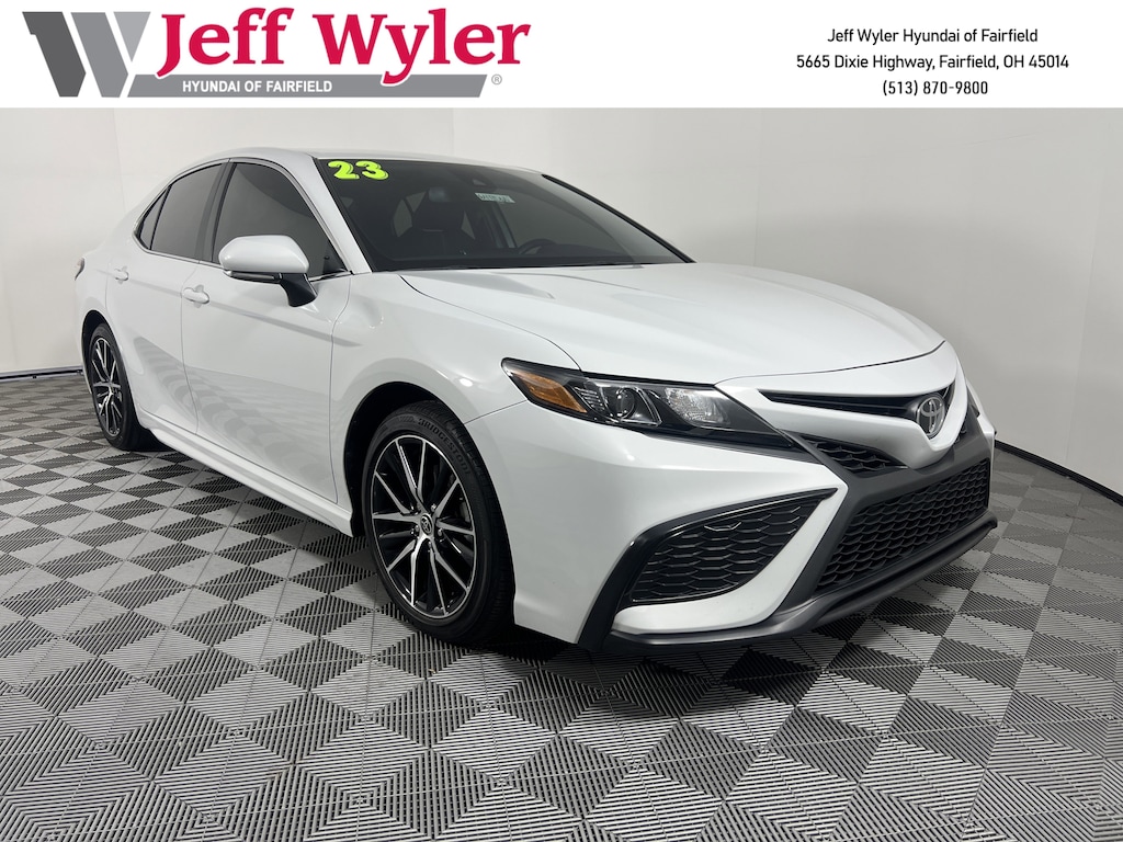 CARFAX One-Owner. Clean CARFAX. Jeff Wyler Hyundai of Fairfield is very proud to offer this good-looking 2023 Toyota Camry SE in White. Well equipped with: Android Auto, Apple CarPlay, CALL NOW FOR YOUR VIP APPOINTMENT 513-870-9800, FULLY SERVICED w/RECORDS, GUARANTEED FINANCING!! NO MATTER YOUR SITUATION WE CAN GET AN APPROVAL!!, THE #1 Volume dealer in the region! Come see why for yourself Today!!, WE PAY MORE FOR YOUR TRADE!!, 4-Wheel Disc Brakes, 6 Speakers, 8.0J x 18" Alloy Wheels, ABS brakes, Air Conditioning, Alloy wheels, AM/FM radio: SiriusXM, Apple CarPlay/Android Auto, Auto High-beam Headlights, Automatic temperature control, Brake assist, Bumpers: body-color, Delay-off headlights, Driver door bin, Driver vanity mirror, Dual front impact airbags, Dual front side impact airbags, Electronic Stability Control, Emergency communication system: Safety Connect (1-year trial), Exterior Parking Camera Rear, Four wheel independent suspension, Front anti-roll bar, Front Bucket Seats, Front Center Armrest, Front dual zone A/C, Front reading lights, Fully automatic headlights, Heated door mirrors, Illuminated entry, Knee airbag, Leather steering wheel, Low tire pressure warning, Occupant sensing airbag, Outside temperature display, Overhead airbag, Overhead console, Panic alarm, Passenger door bin, Passenger vanity mirror, Power door mirrors, Power driver seat, Power steering, Power windows, Radio data system, Radio: Audio, Rear anti-roll bar, Rear seat center armrest, Rear side impact airbag, Rear window defroster, Remote keyless entry, Security system, Speed control, Speed-sensing steering, Split folding rear seat, Spoiler, Sport SofTex Seat Trim w/Fabric Inserts, Steering wheel mounted audio controls, Tachometer, Telescoping steering wheel, Tilt steering wheel, Traction control, Trip computer, Turn signal indicator mirrors, and Variably intermittent wipers. TO CHECK ON THE AVAILABILITY OF THIS VEHICLE REACH OUT TO ONE OF OUR TEAM MEMBERS!! ALSO SHOP ONLINE AT https://www.jeffwylerhyundaioffairfield.com/ Proudly Serving: Cincinnati, Dayton, Columbus, Louisville, Lexington, Indianapolis, Hamilton, Florence, Alexandria, Beavercreek, Springdale, West Chester, Monroe, Fairfield, Kenwood, Newport and all of greater Cincinnati Ohio, Indiana, and Northern Kentucky.