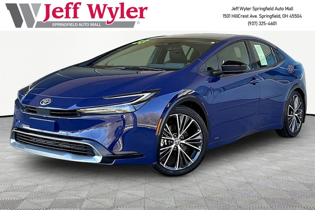 Jeff Wyler Springfield Auto Mall is very proud to offer this stunning-looking 2023 Toyota Prius XLE in Blue. Well equipped with: 19" Alloy Wheels, 4-Wheel Disc Brakes, ABS brakes, Air Conditioning, Alloy wheels, AM/FM radio: SiriusXM, Auto High-beam Headlights, Auto-dimming Rear-View mirror, Automatic temperature control, Brake assist, Bumpers: body-color, Delay-off headlights, Driver door bin, Driver vanity mirror, Dual front impact airbags, Dual front side impact airbags, Electronic Stability Control, Emergency communication system: Safety Connect (up to 10-year trial subscription), Exterior Parking Camera Rear, Four wheel independent suspension, Front anti-roll bar, Front Bucket Seats, Front Center Armrest, Front reading lights, Fully automatic headlights, Garage door transmitter: HomeLink, Heated door mirrors, Heated front seats, Heated steering wheel, Illuminated entry, Low tire pressure warning, Occupant sensing airbag, Outside temperature display, Overhead airbag, Overhead console, Panic alarm, Passenger door bin, Passenger vanity mirror, Power door mirrors, Power driver seat, Power steering, Power windows, Radio data system, Rain sensing wipers, Rear anti-roll bar, Rear reading lights, Rear seat center armrest, Rear side impact airbag, Rear window defroster, Remote keyless entry, Speed control, Speed-Sensitive Wipers, Split folding rear seat, Steering wheel mounted audio controls, Synthetic Leather Seat Trim, Telescoping steering wheel, Tilt steering wheel, Traction control, Trip computer, and Variably intermittent wipers. Ask about available certifications. Used vehicles 10 years of age or newer with less than 100,000 miles are eligible for the Wyler Assurance Program, but eligible vehicles must pass our reconditioning process and multi-point inspection. Provided the vehicle passes inspection, vehicles will be eligible for the 6 month/6,000 mile limited warranty. The 6 month/6,000 mile limited warranty is NOT available on AS-IS vehicles, wholesale vehicles, lease buyback/pass-thru vehicles or un-inspected vehicles. Note that this program can also apply to vehicles where the remaining factory coverage is less than 6 months or 6,000 miles. Please check the Federal Trade Commission (FTC) Buyers guide on the vehicle for full details as to whether or not warranty coverage may apply. Contact Dealer for additional details. The Wyler Assurance 6 month/6,000 Mile limited warranty ends 6 months from the date of the Retail Purchase Agreement (BUYERS ORDER) or when the vehicle's odometer registers 6,000 additional miles to the mileage listed on the BUYERS ORDER, whichever comes first. Your Deductible - The warranty holder on your contract pays the first $100 of each covered repair.