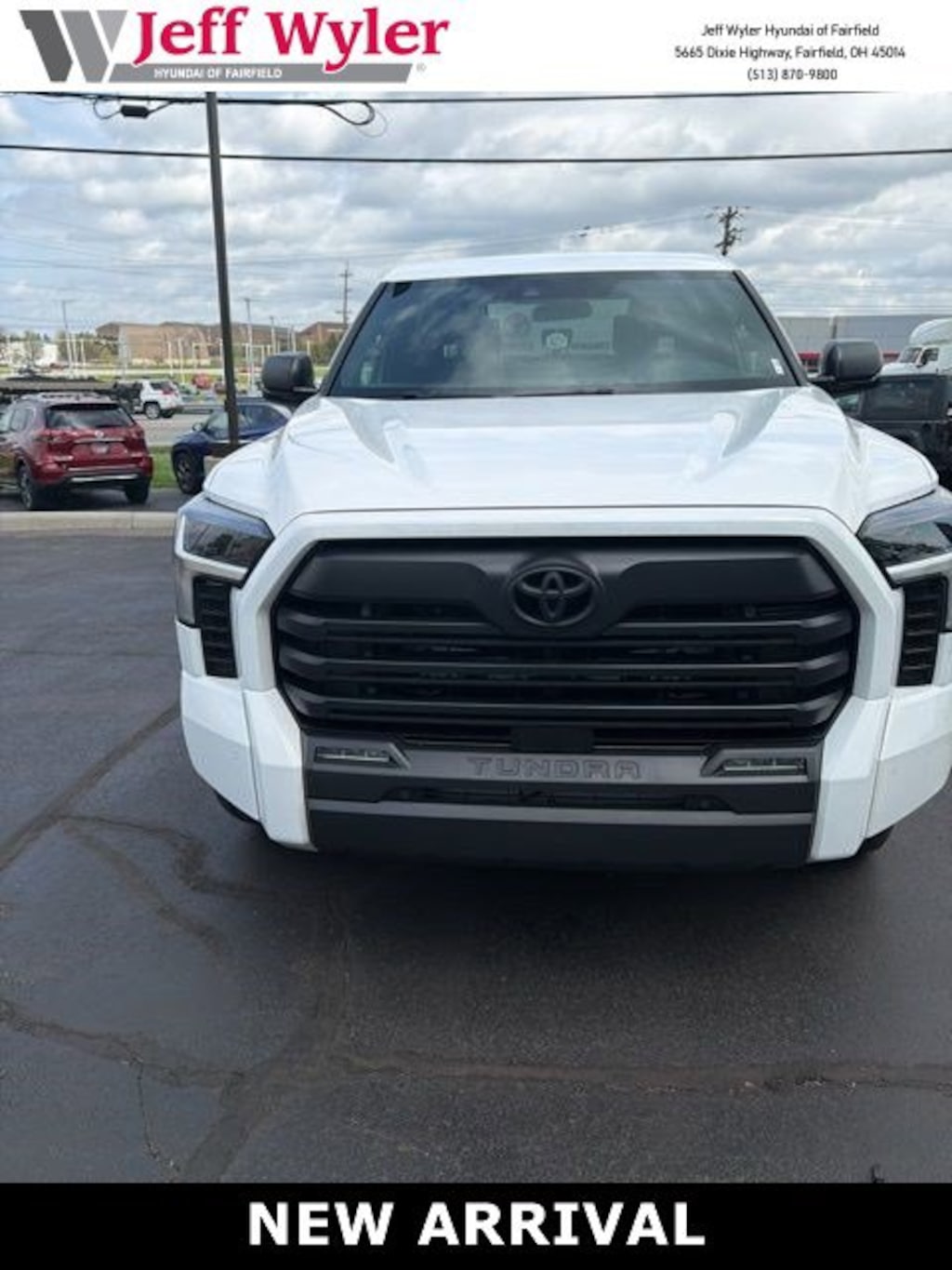 CARFAX One-Owner. Jeff Wyler Hyundai of Fairfield is proud to offer this dependable 2025 Toyota Tundra SR5 in White. Well equipped with: 4WD, Cloth, Android Auto, Apple CarPlay, CALL NOW FOR YOUR VIP APPOINTMENT 513-870-9800, FULLY SERVICED w/RECORDS, GUARANTEED FINANCING!! NO MATTER YOUR SITUATION WE CAN GET AN APPROVAL!!, THE #1 Volume dealer in the region! Come see why for yourself Today!!, WE PAY MORE FOR YOUR TRADE!!, 18" Alloy Wheels, 3.31 Axle Ratio, 4-Wheel Disc Brakes, 9 Speakers, ABS brakes, Air Conditioning, Alloy wheels, AM/FM radio: SiriusXM, Apple CarPlay/Android Auto, Auto High-beam Headlights, Automatic temperature control, Brake assist, Bumpers: body-color, Delay-off headlights, Driver door bin, Driver vanity mirror, Dual front impact airbags, Dual front side impact airbags, Electronic Stability Control, Emergency communication system: Safety Connect (10-year trial), Exterior Parking Camera Rear, Fabric Seat Trim (FB), Front anti-roll bar, Front Bucket Seats, Front Center Armrest, Front fog lights, Front reading lights, Front wheel independent suspension, Fully automatic headlights, Heated door mirrors, Illuminated entry, Knee airbag, Low tire pressure warning, Occupant sensing airbag, Outside temperature display, Overhead airbag, Overhead console, Panic alarm, Passenger door bin, Passenger vanity mirror, Power door mirrors, Power driver seat, Power steering, Power windows, Radio data system, Radio: Audio Multimedia System, Rear reading lights, Rear step bumper, Rear window defroster, Remote keyless entry, Safety Connect, Security system, Speed control, Speed-sensing steering, Split folding rear seat, Steering wheel mounted audio controls, Tachometer, Telescoping steering wheel, Tilt steering wheel, Traction control, Trip computer, Variably intermittent wipers, and Voltmeter. TO CHECK ON THE AVAILABILITY OF THIS VEHICLE REACH OUT TO ONE OF OUR TEAM MEMBERS!! ALSO SHOP ONLINE AT https://www.jeffwylerhyundaioffairfield.com/ Proudly Serving: Cincinnati, Dayton, Columbus, Louisville, Lexington, Indianapolis, Hamilton, Florence, Alexandria, Beavercreek, Springdale, West Chester, Monroe, Fairfield, Kenwood, Newport and all of greater Cincinnati Ohio, Indiana, and Northern Kentucky.